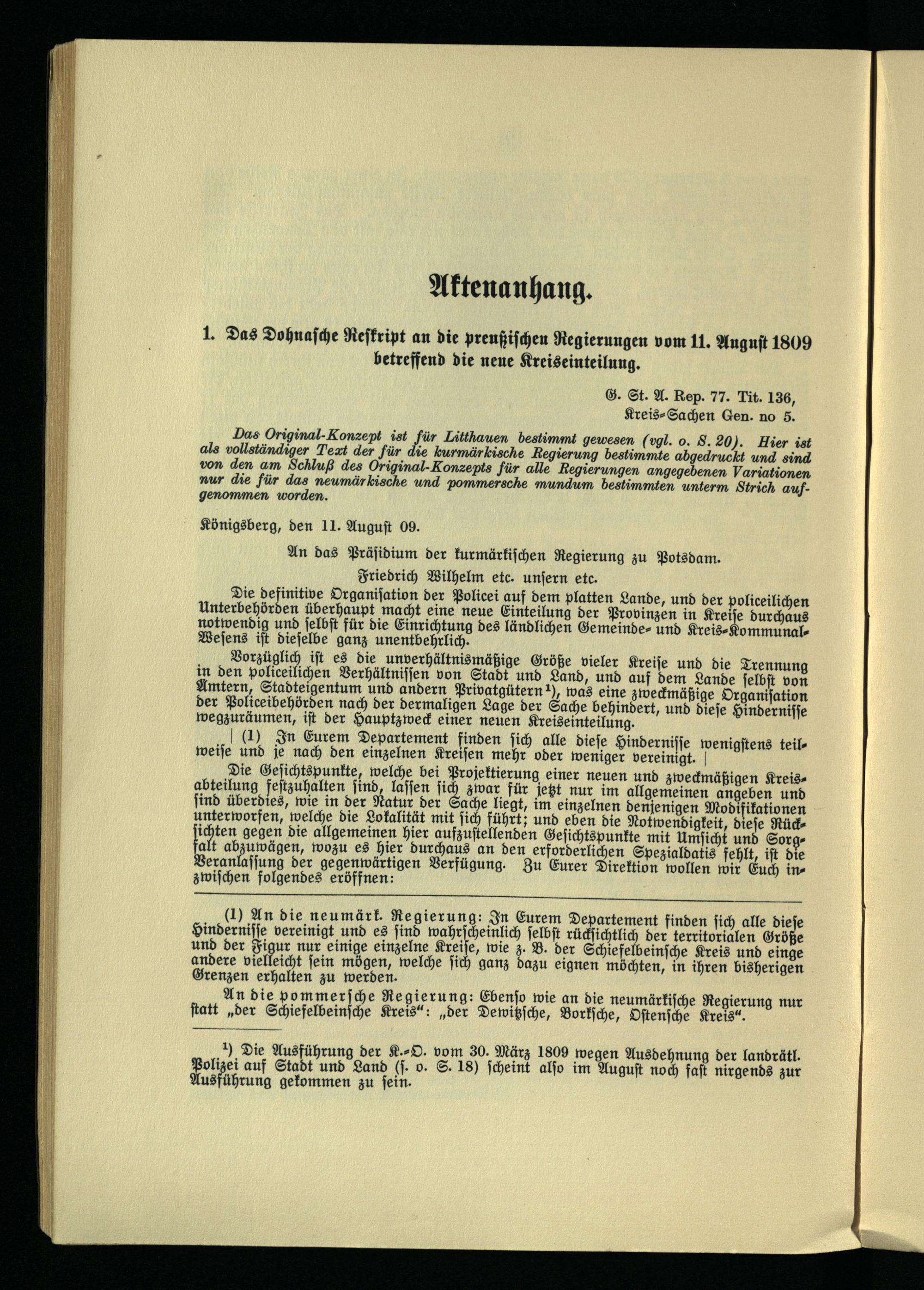 3. Kapitel. Die Reform im Stadium der grundsätzlichen Erwägungen 1807 bis August 1809.