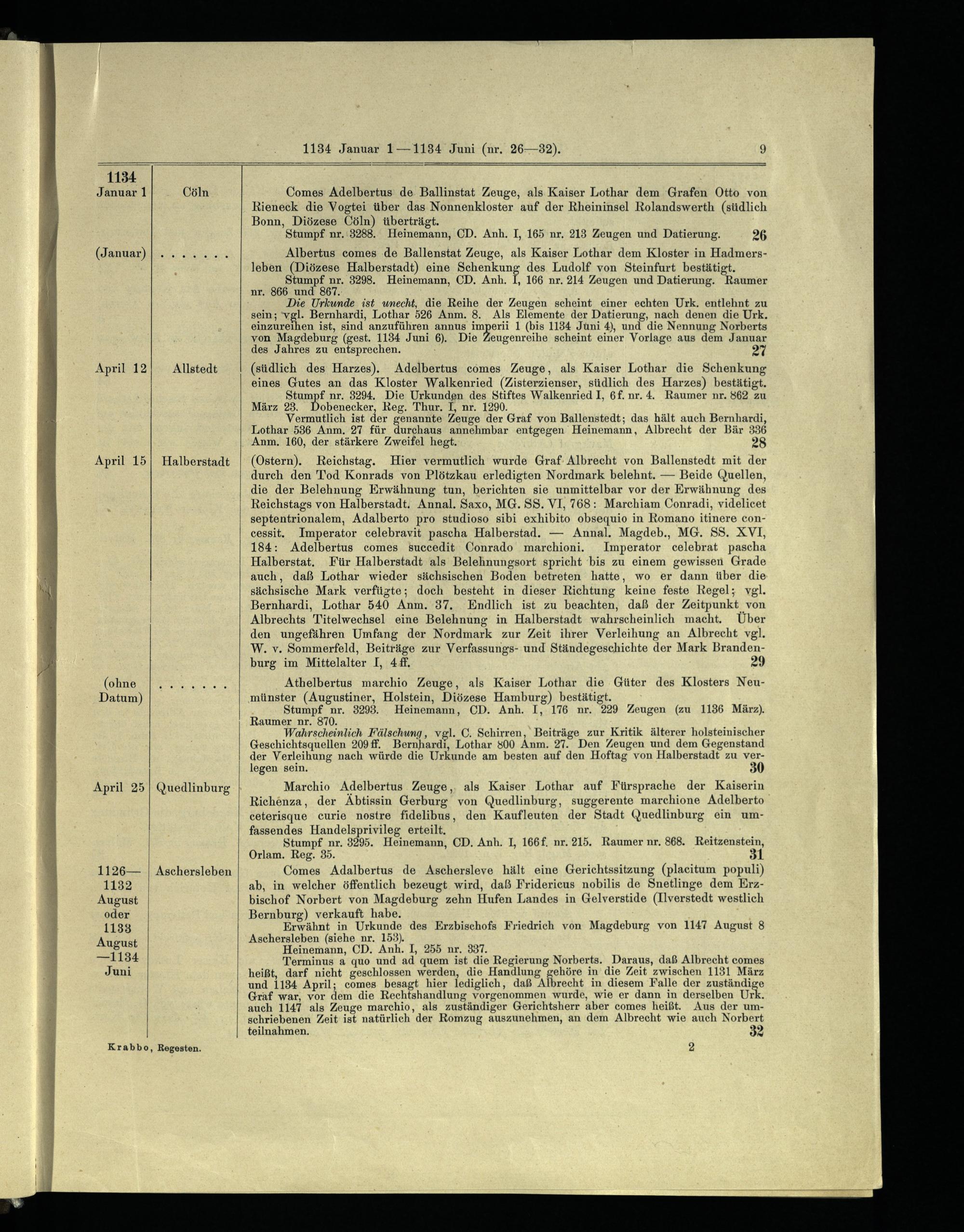 Regesten der Markgrafen von Brandenburg aus askanischem Hause / Bearb. von Hermann Krabbo
