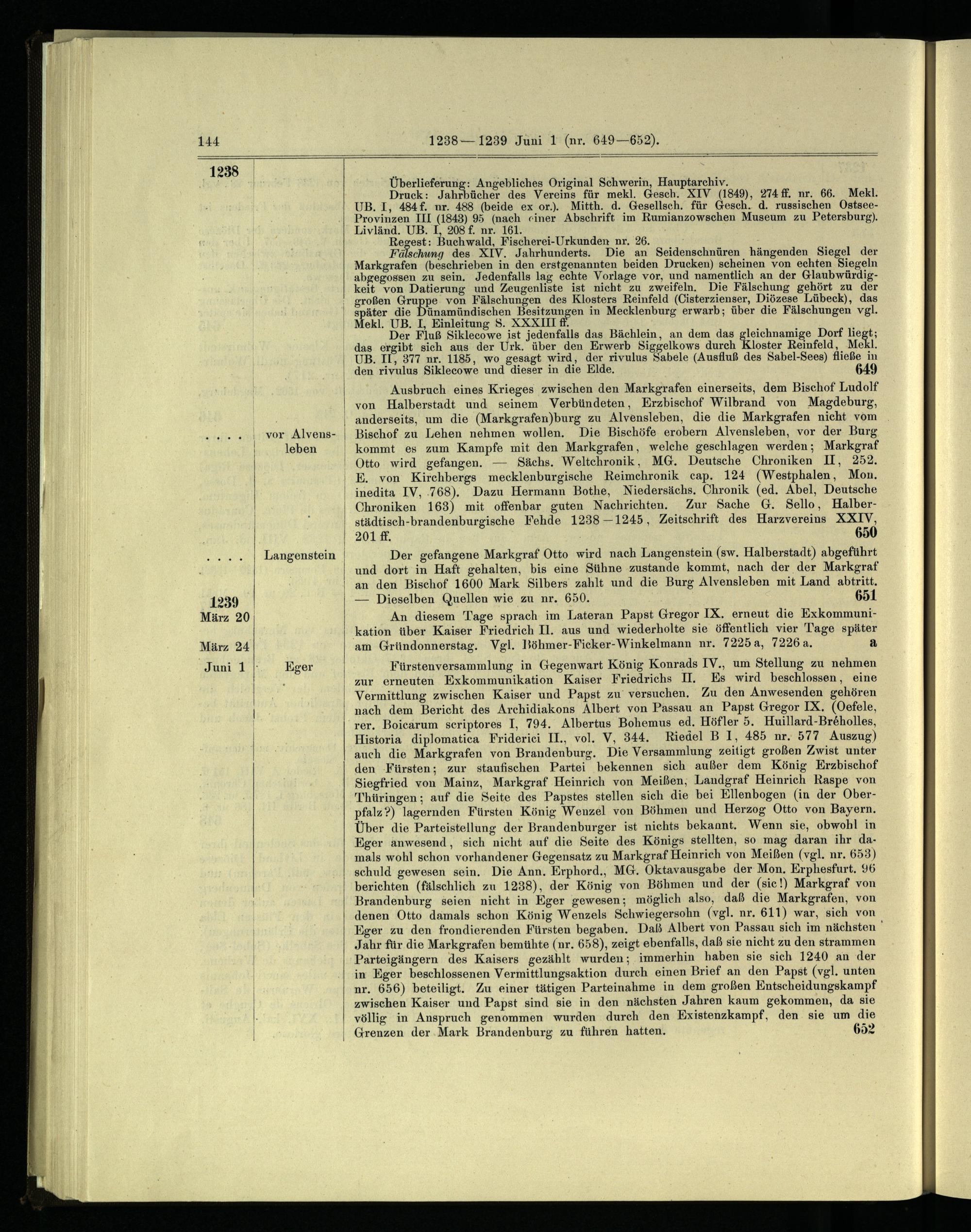 Regesten der Markgrafen von Brandenburg aus askanischem Hause