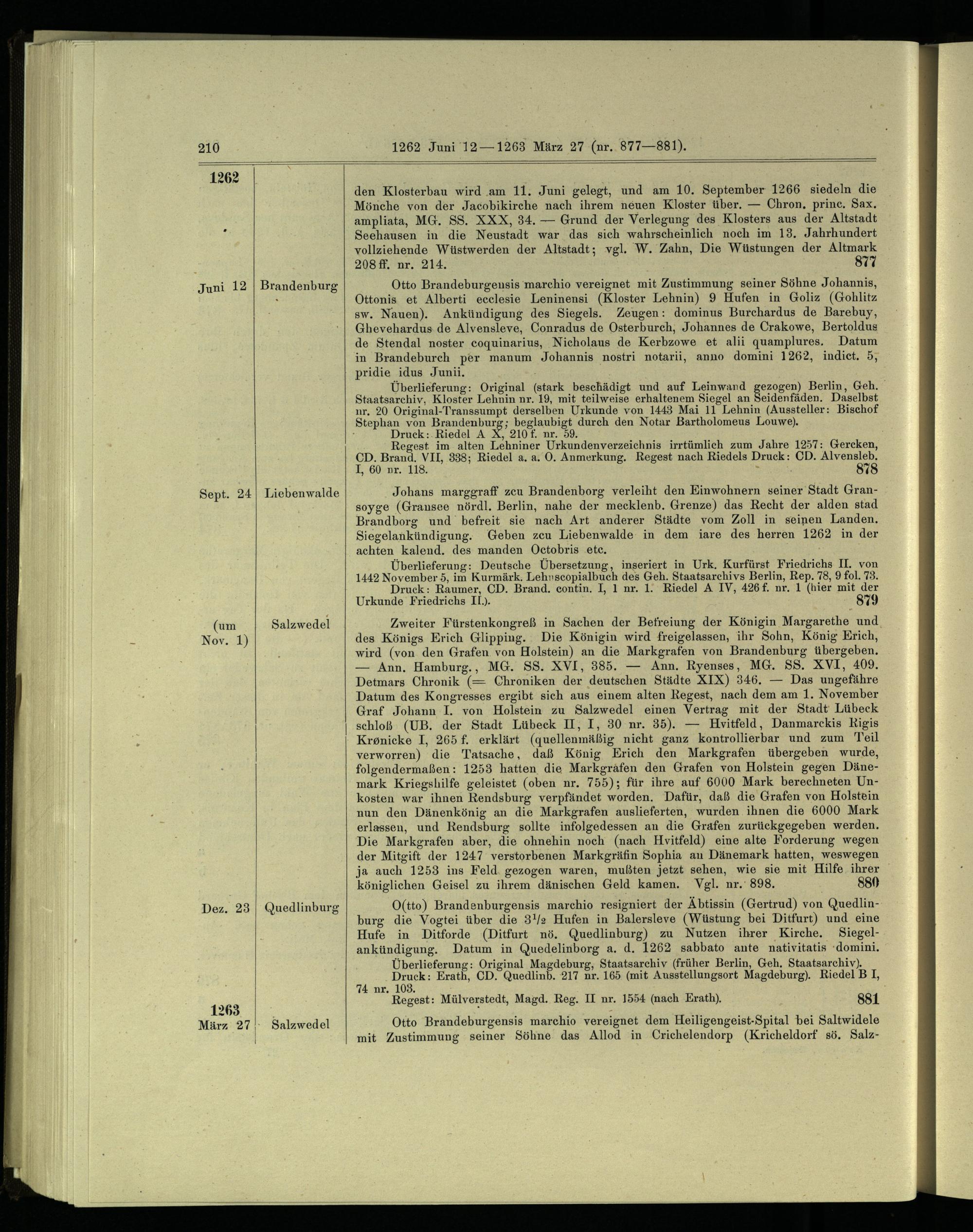 Regesten der Markgrafen von Brandenburg aus askanischem Hause