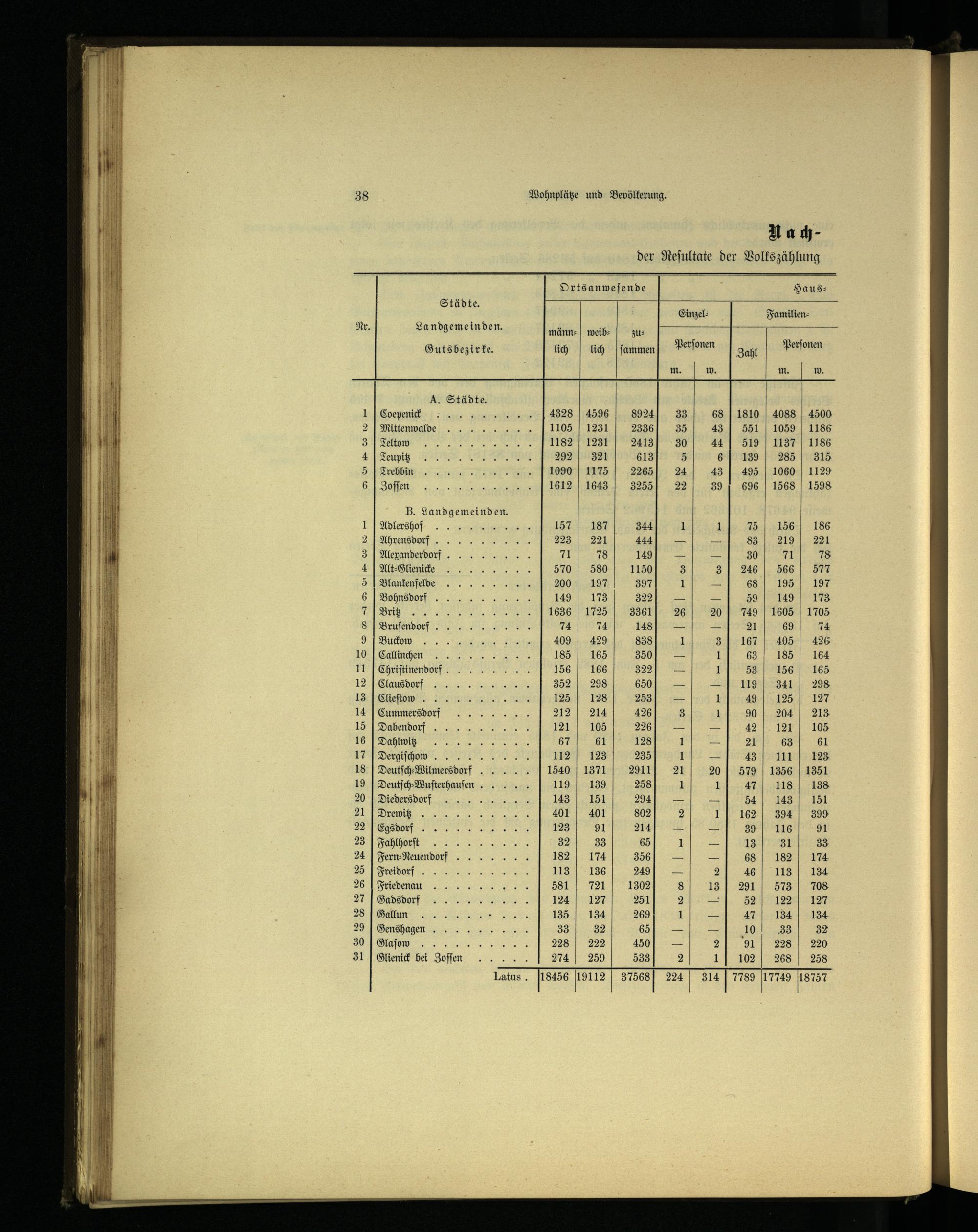Wohnplätze und Bevölkerung. Ab- und Zuzüge der Bevölkerung.