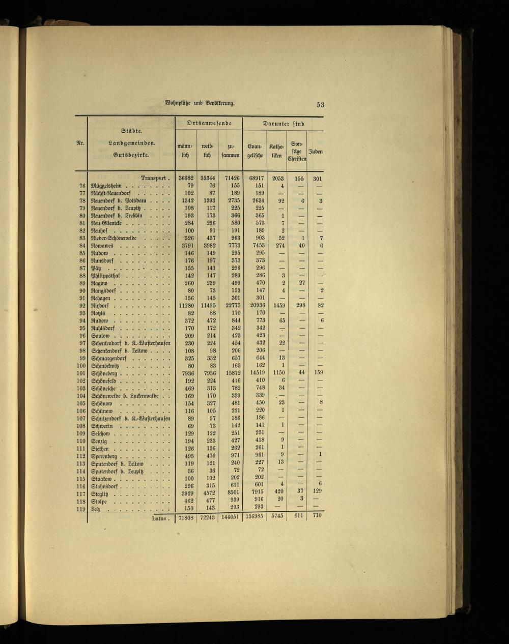 Nachweisung der Städte, Landgemeinden und Gutsbezirke des Kreises Teltow.
