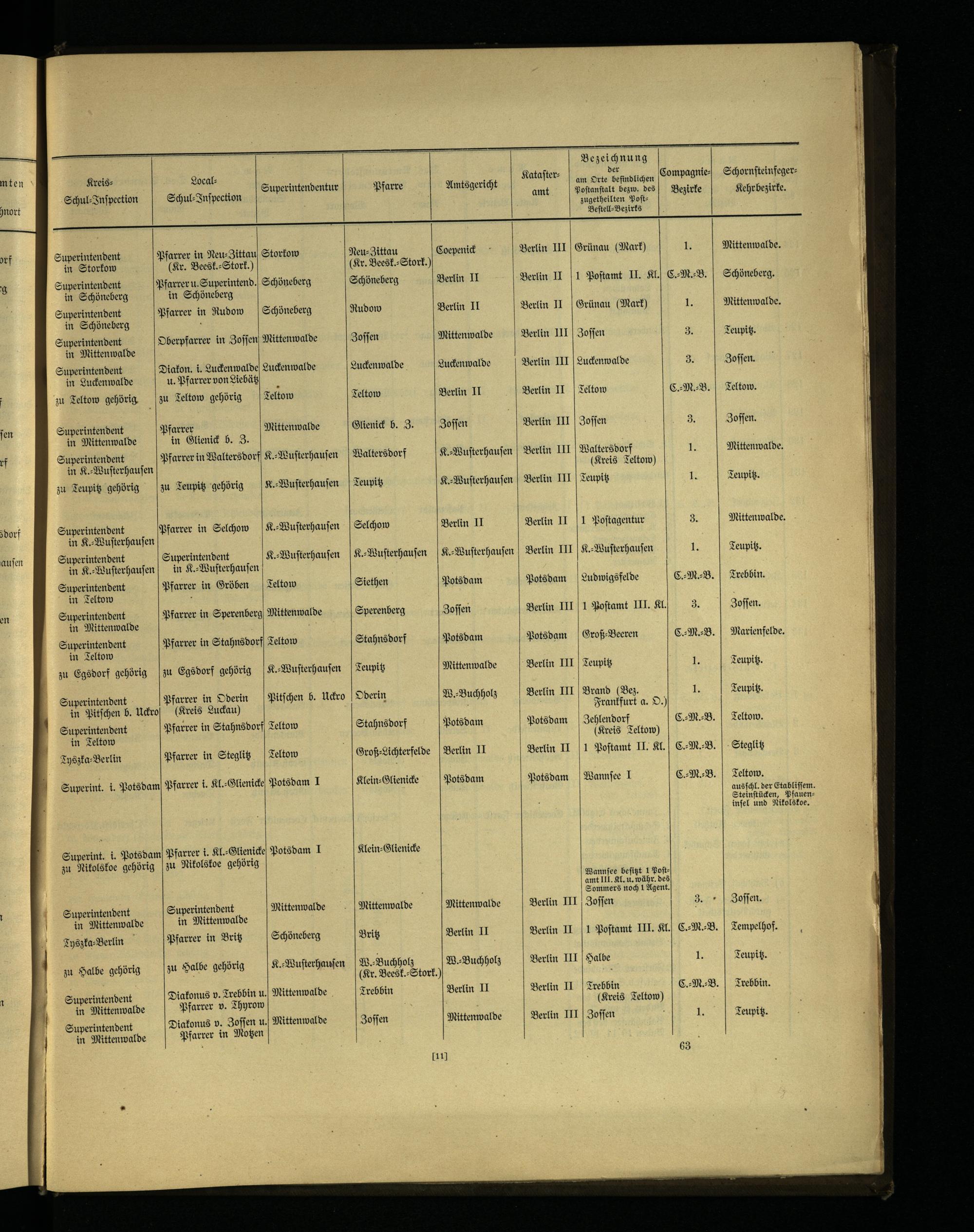 Nachweisung über die Diözesen, Parochien, Pfarrer, das Einkommen derselben, die Kirchen- und die Patronats-Verhältnisse des Kreises Teltow.