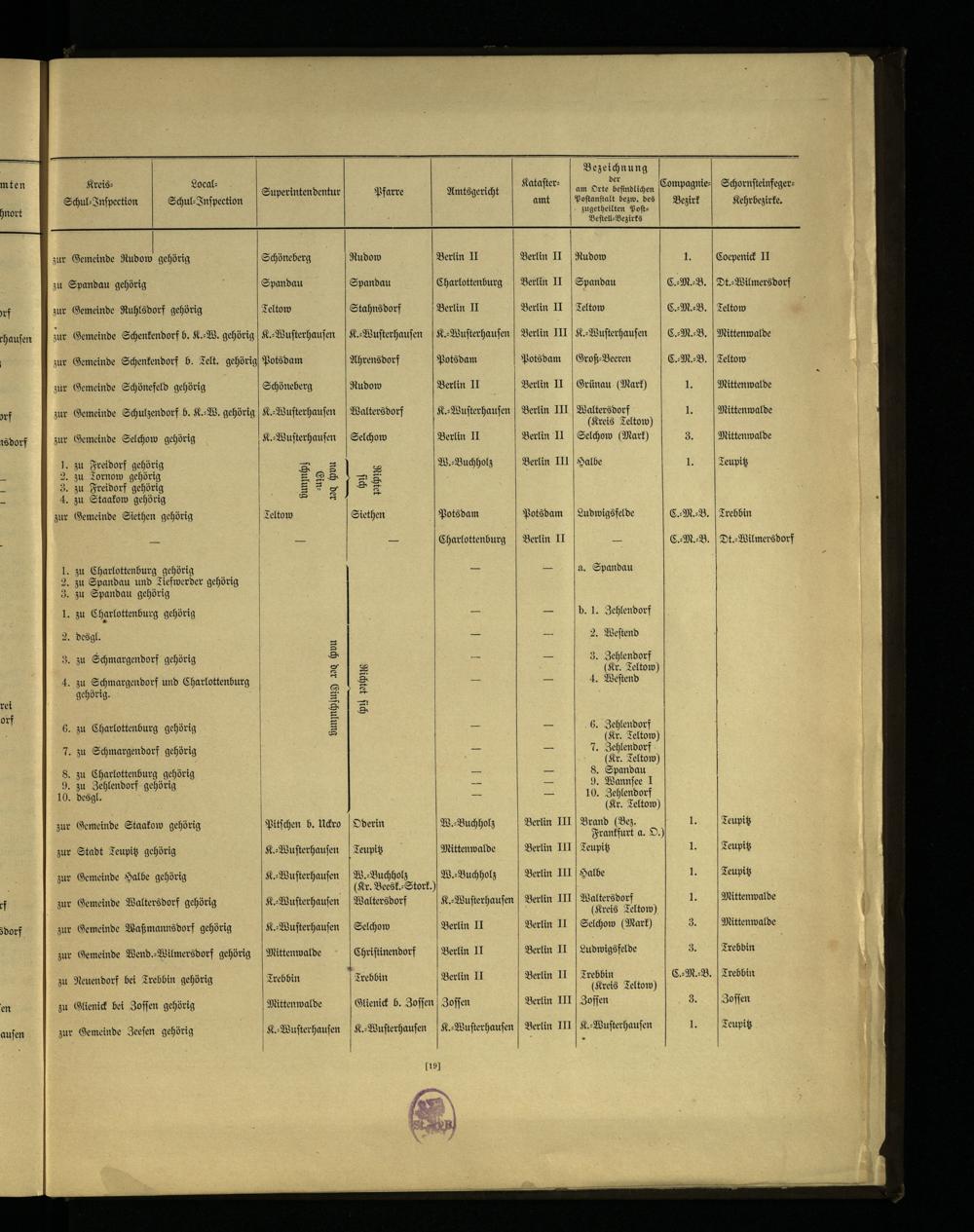 Nachweisung der Städte, Landgemeinden und Gutsbezirke des Kreises Teltow.