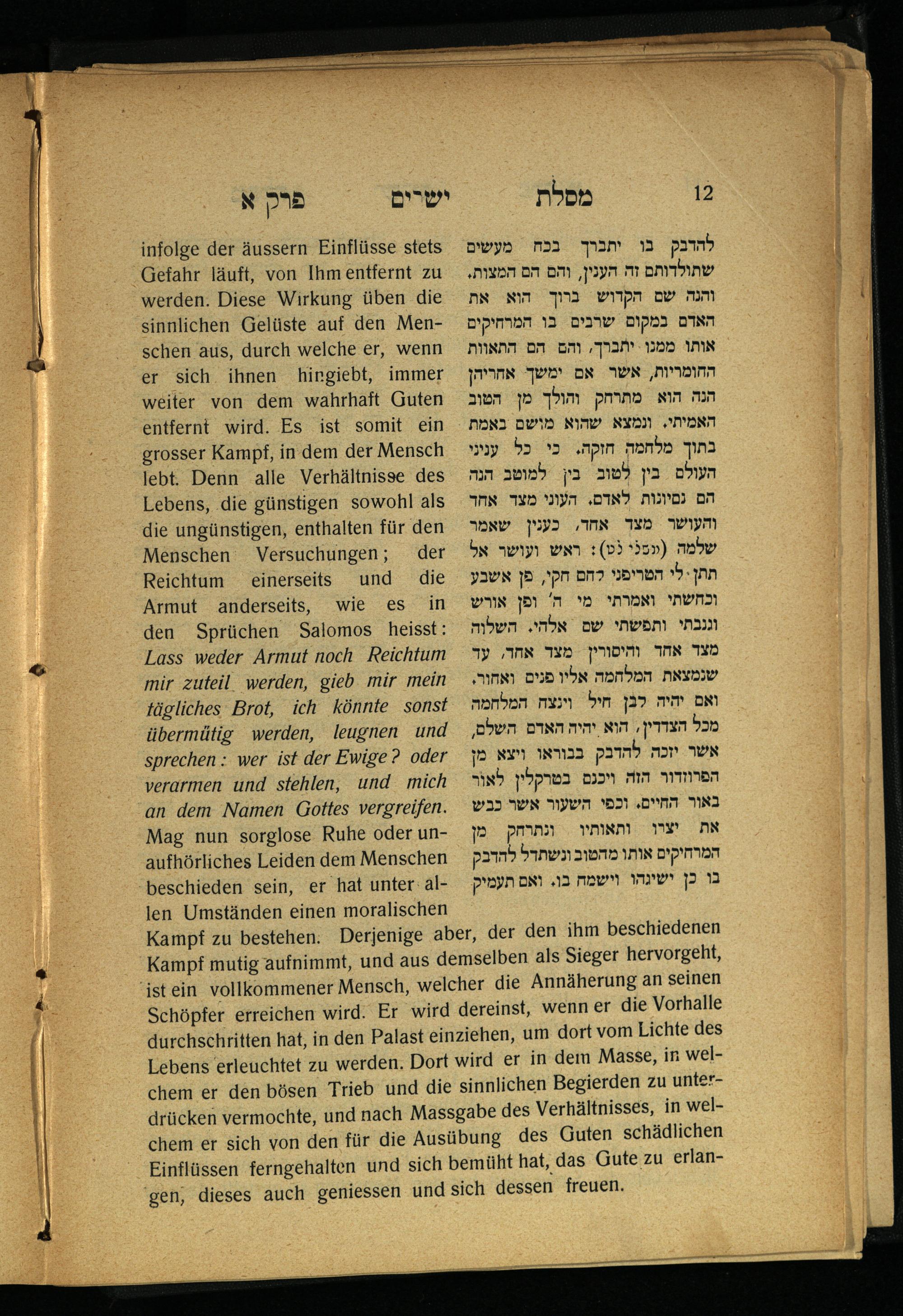 Lebensführung der Redlichen / von Mosche Chaim Luzzatto. Mit einer neben dem Text befindlichen dt. Übers. von Oskar Sachariasohn