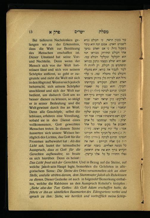 Lebensführung der Redlichen / von Mosche Chaim Luzzatto. Mit einer neben dem Text befindlichen dt. Übers. von Oskar Sachariasohn
