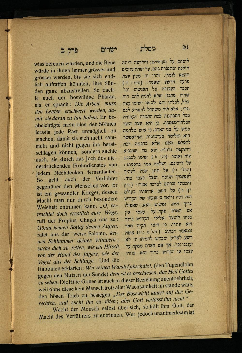 Lebensführung der Redlichen / von Mosche Chaim Luzzatto. Mit einer neben dem Text befindlichen dt. Übers. von Oskar Sachariasohn