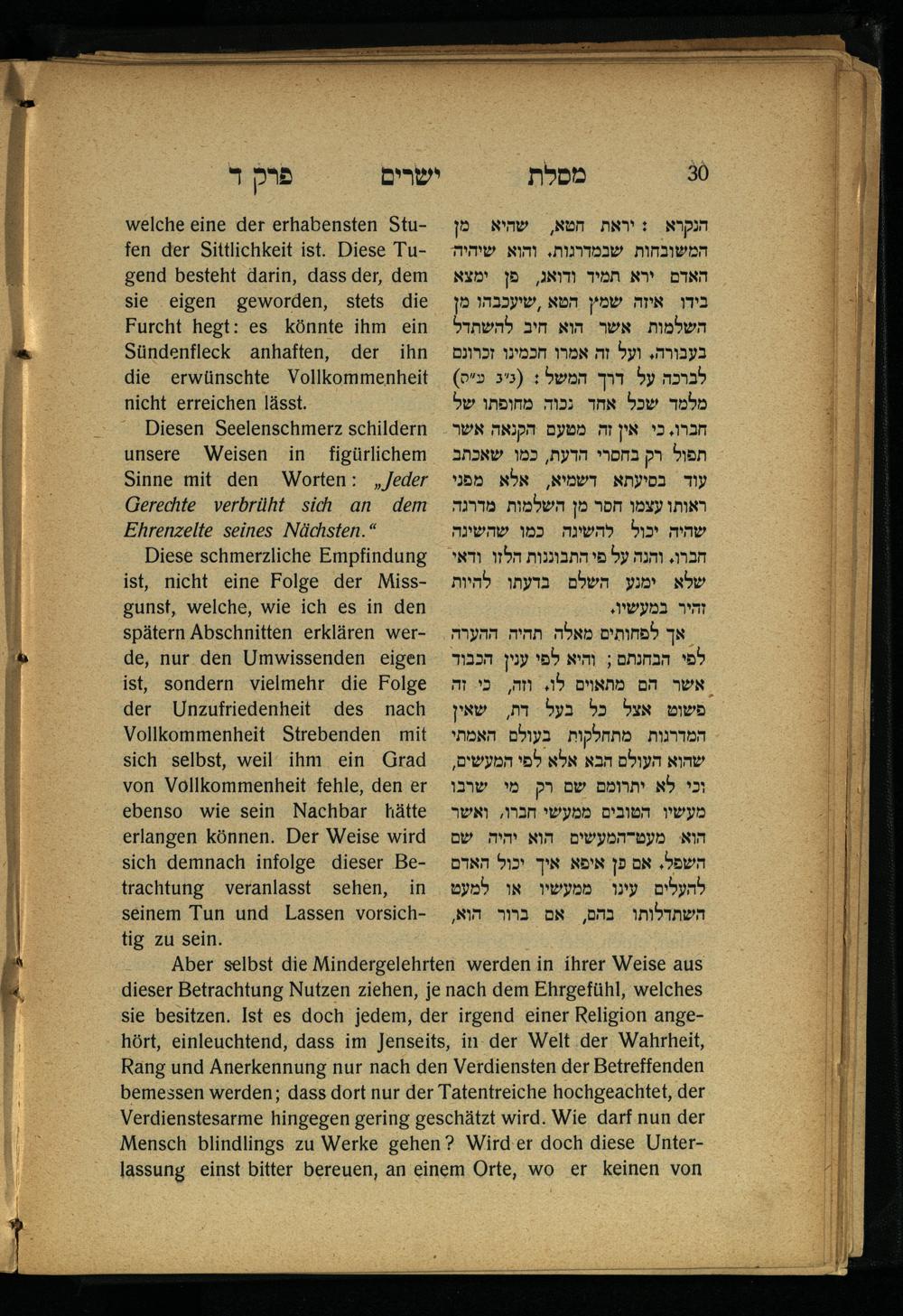 Lebensführung der Redlichen / von Mosche Chaim Luzzatto. Mit einer neben dem Text befindlichen dt. Übers. von Oskar Sachariasohn