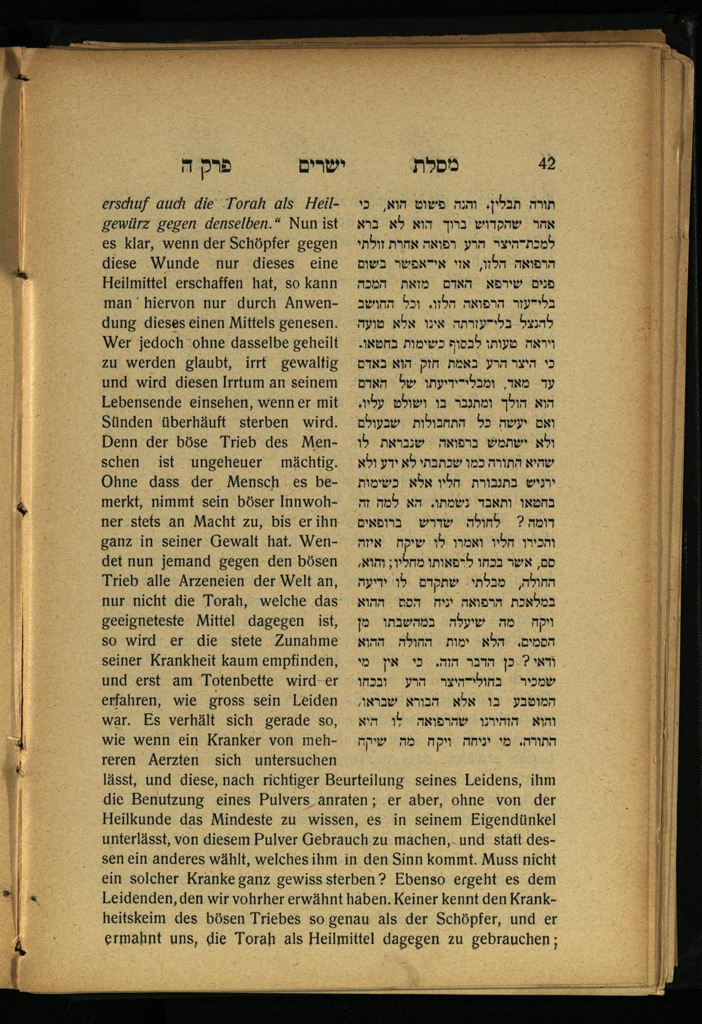 Lebensführung der Redlichen / von Mosche Chaim Luzzatto. Mit einer neben dem Text befindlichen dt. Übers. von Oskar Sachariasohn