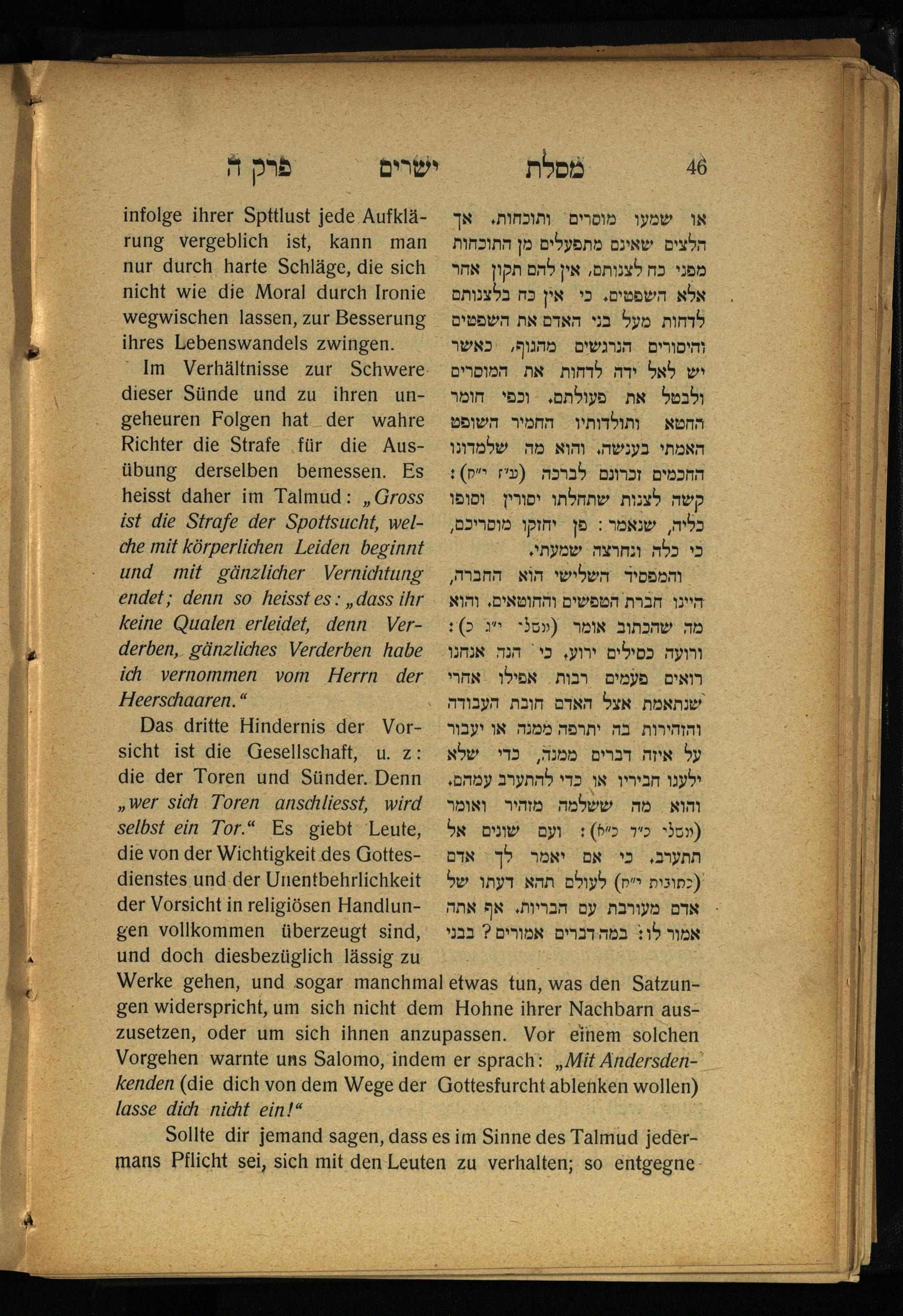 Lebensführung der Redlichen / von Mosche Chaim Luzzatto. Mit einer neben dem Text befindlichen dt. Übers. von Oskar Sachariasohn