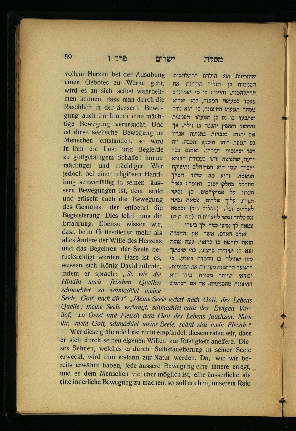 Lebensführung der Redlichen / von Mosche Chaim Luzzatto. Mit einer neben dem Text befindlichen dt. Übers. von Oskar Sachariasohn