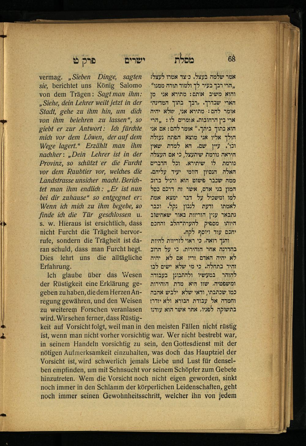 Lebensführung der Redlichen / von Mosche Chaim Luzzatto. Mit einer neben dem Text befindlichen dt. Übers. von Oskar Sachariasohn