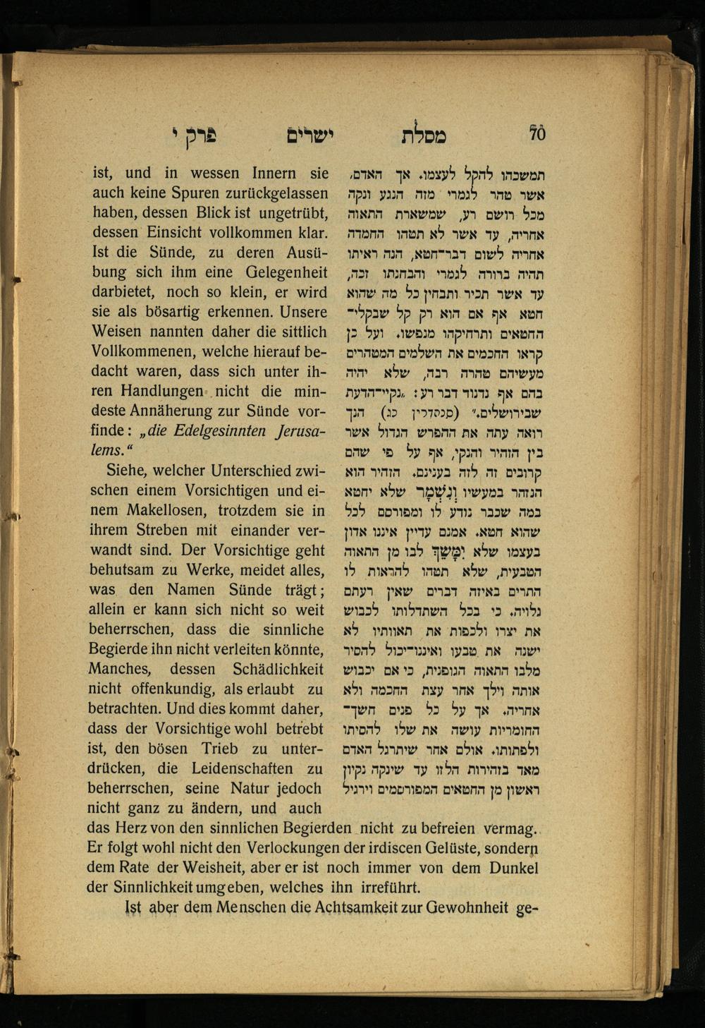 Lebensführung der Redlichen / von Mosche Chaim Luzzatto. Mit einer neben dem Text befindlichen dt. Übers. von Oskar Sachariasohn