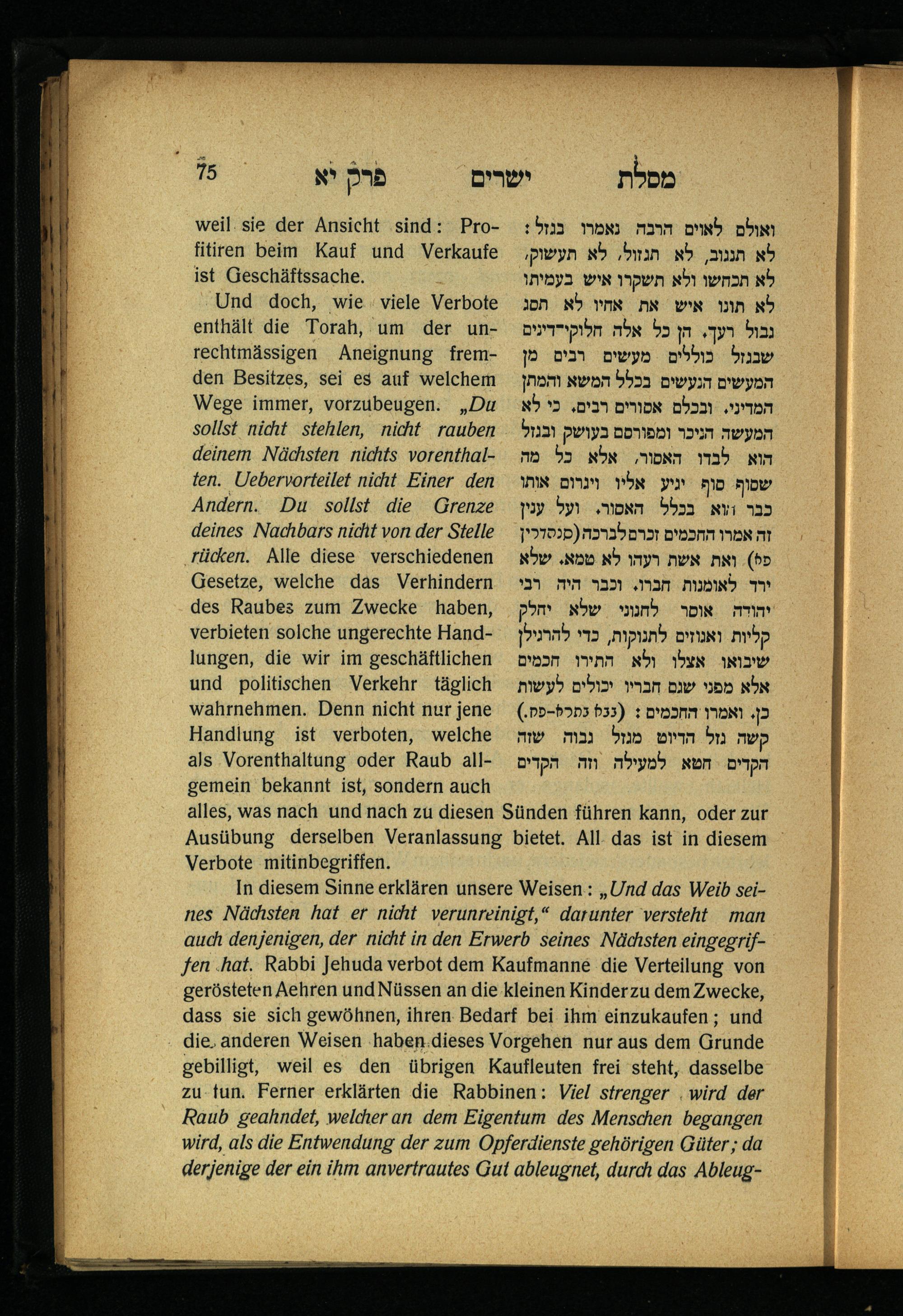 Lebensführung der Redlichen / von Mosche Chaim Luzzatto. Mit einer neben dem Text befindlichen dt. Übers. von Oskar Sachariasohn