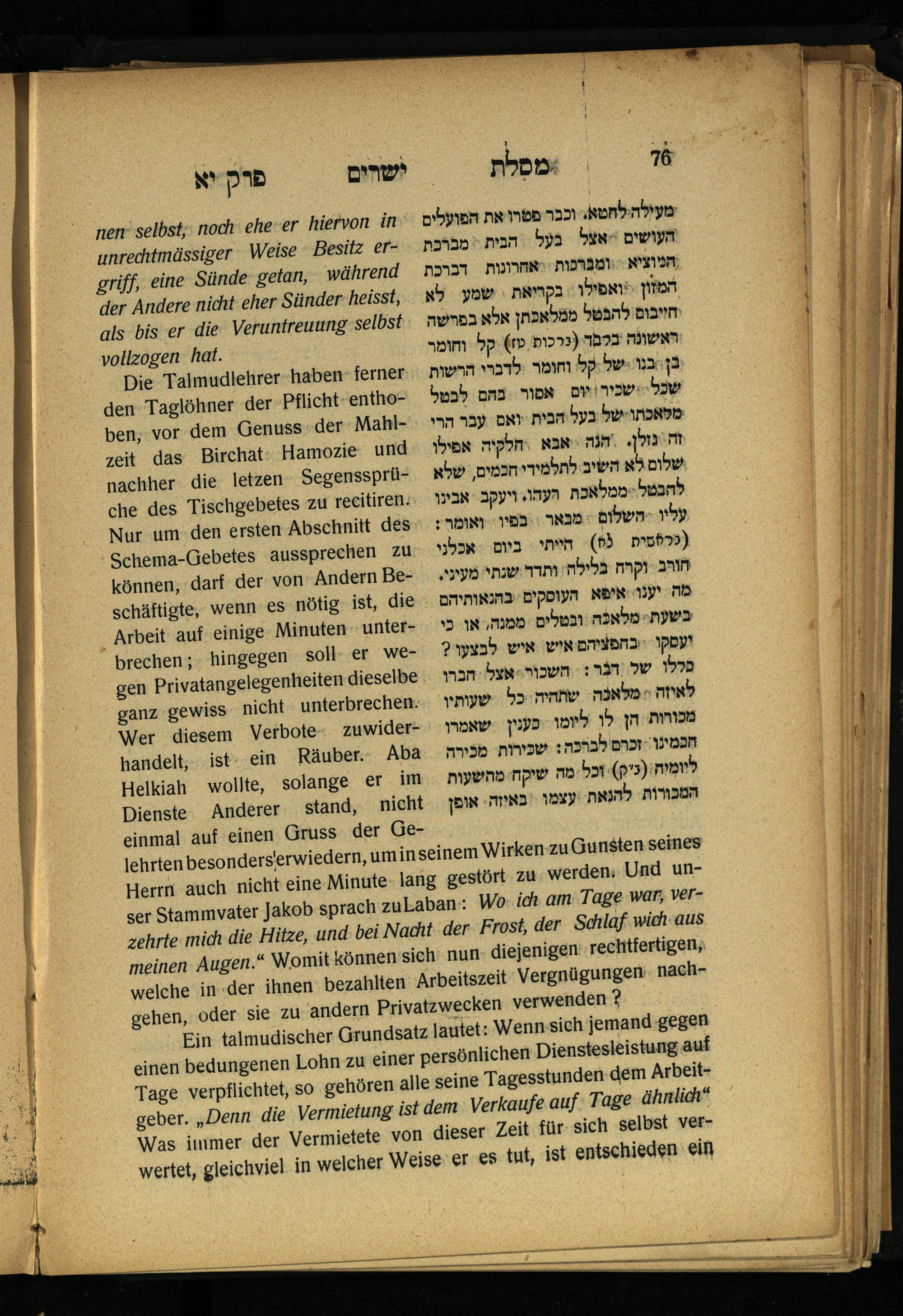 Lebensführung der Redlichen / von Mosche Chaim Luzzatto. Mit einer neben dem Text befindlichen dt. Übers. von Oskar Sachariasohn