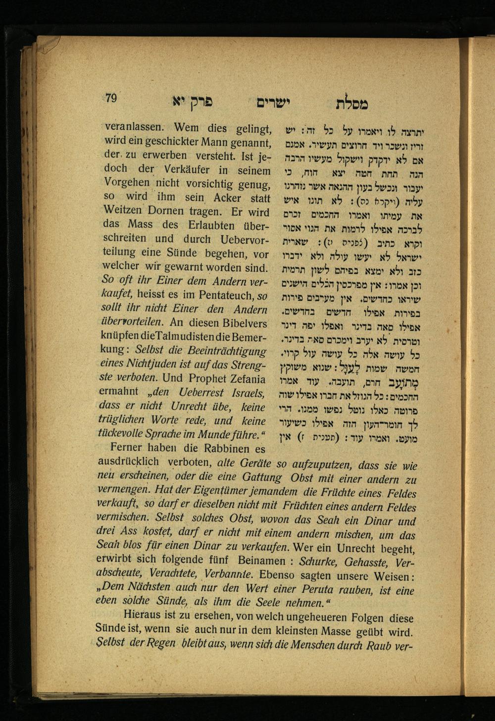 Lebensführung der Redlichen / von Mosche Chaim Luzzatto. Mit einer neben dem Text befindlichen dt. Übers. von Oskar Sachariasohn
