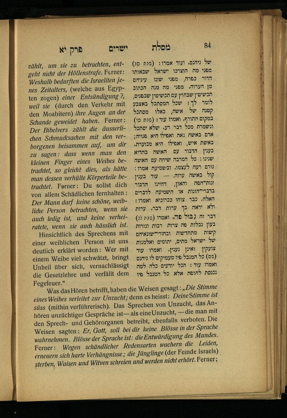 Lebensführung der Redlichen / von Mosche Chaim Luzzatto. Mit einer neben dem Text befindlichen dt. Übers. von Oskar Sachariasohn