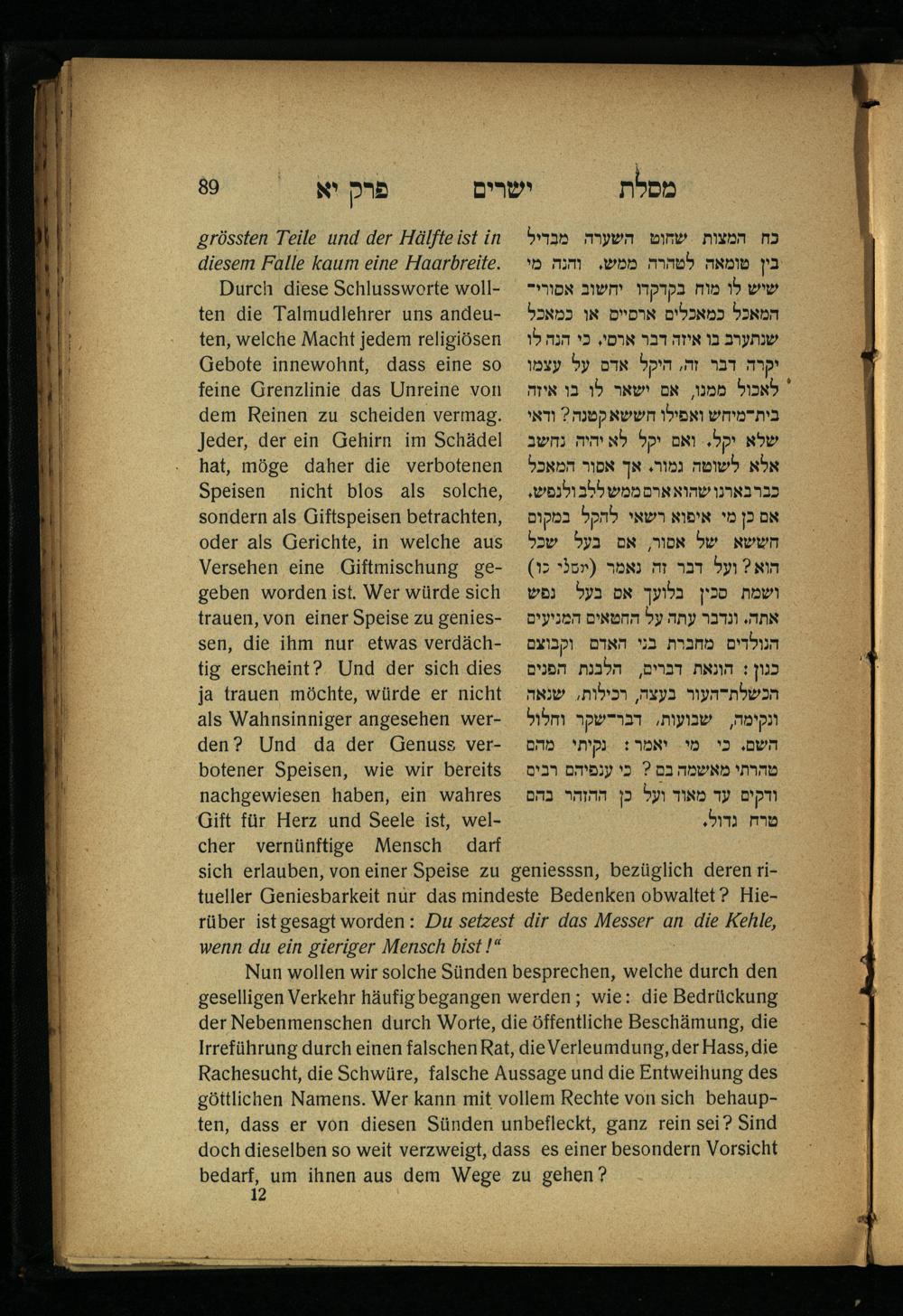 Lebensführung der Redlichen / von Mosche Chaim Luzzatto. Mit einer neben dem Text befindlichen dt. Übers. von Oskar Sachariasohn