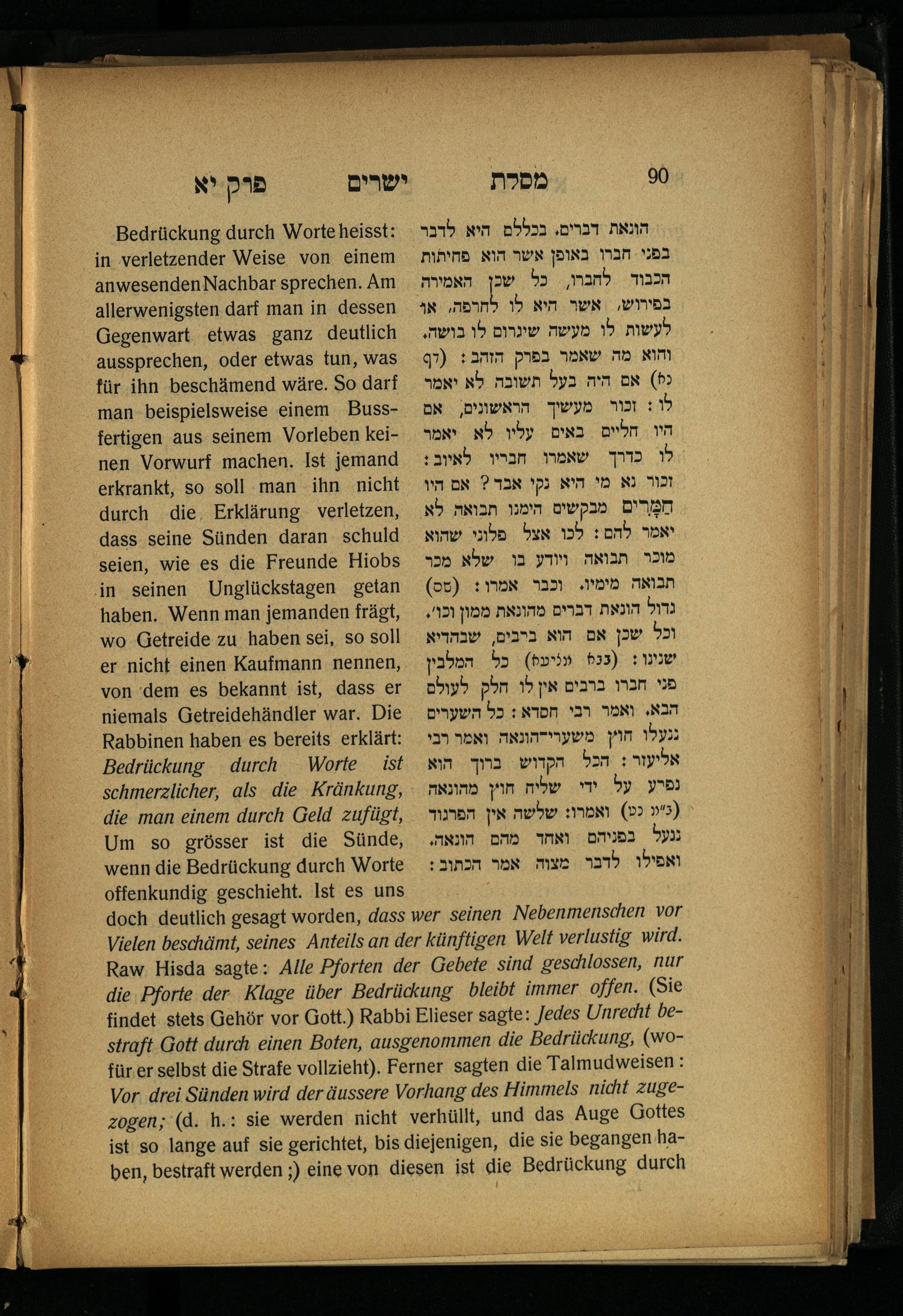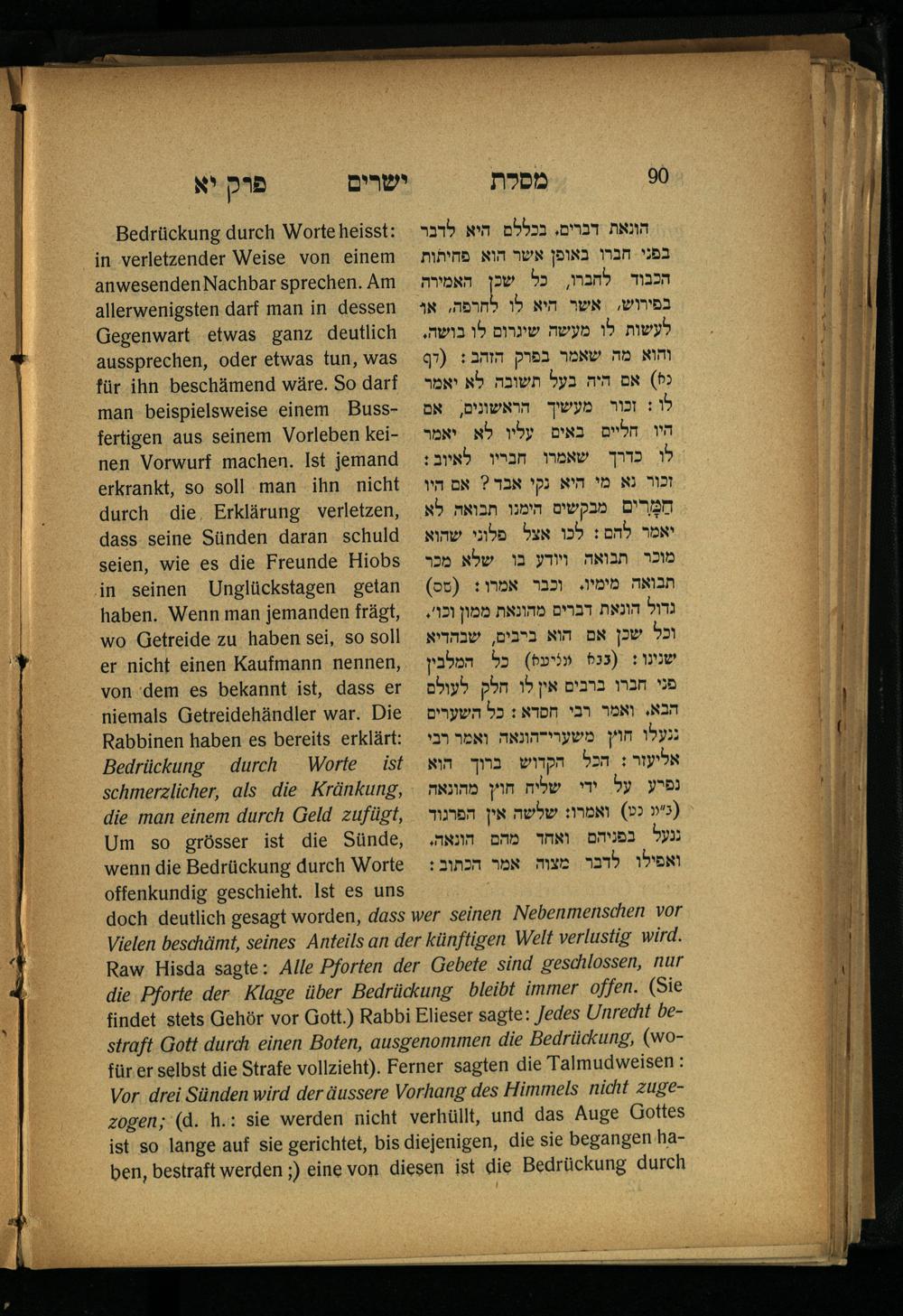 Lebensführung der Redlichen / von Mosche Chaim Luzzatto. Mit einer neben dem Text befindlichen dt. Übers. von Oskar Sachariasohn