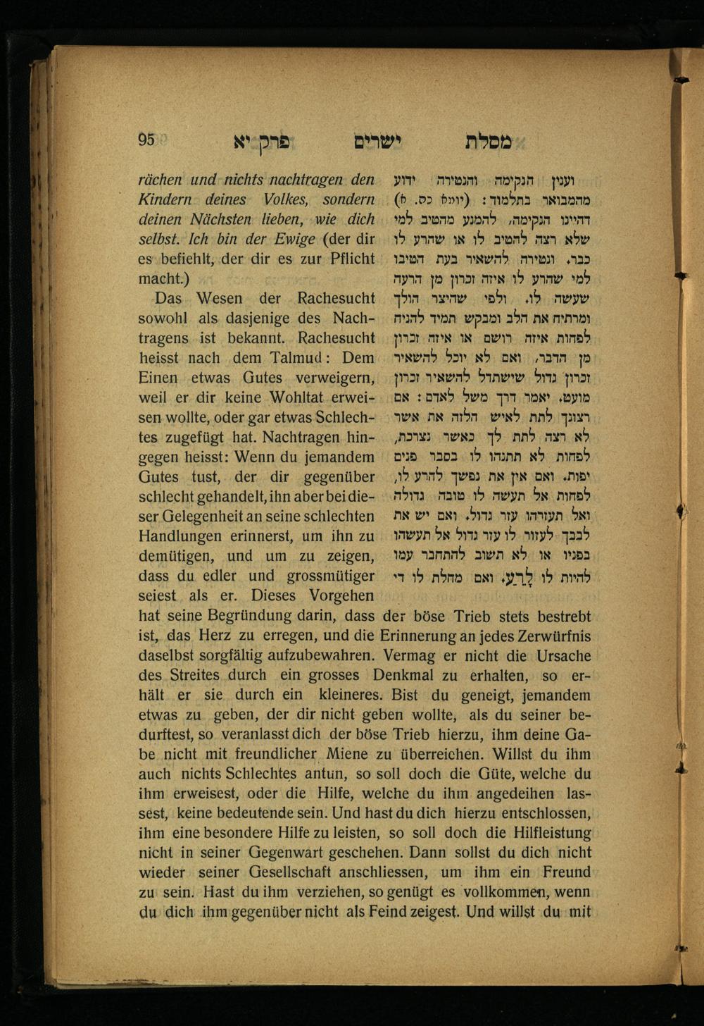 Lebensführung der Redlichen / von Mosche Chaim Luzzatto. Mit einer neben dem Text befindlichen dt. Übers. von Oskar Sachariasohn