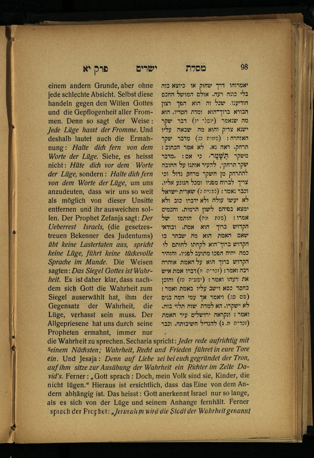 Lebensführung der Redlichen / von Mosche Chaim Luzzatto. Mit einer neben dem Text befindlichen dt. Übers. von Oskar Sachariasohn