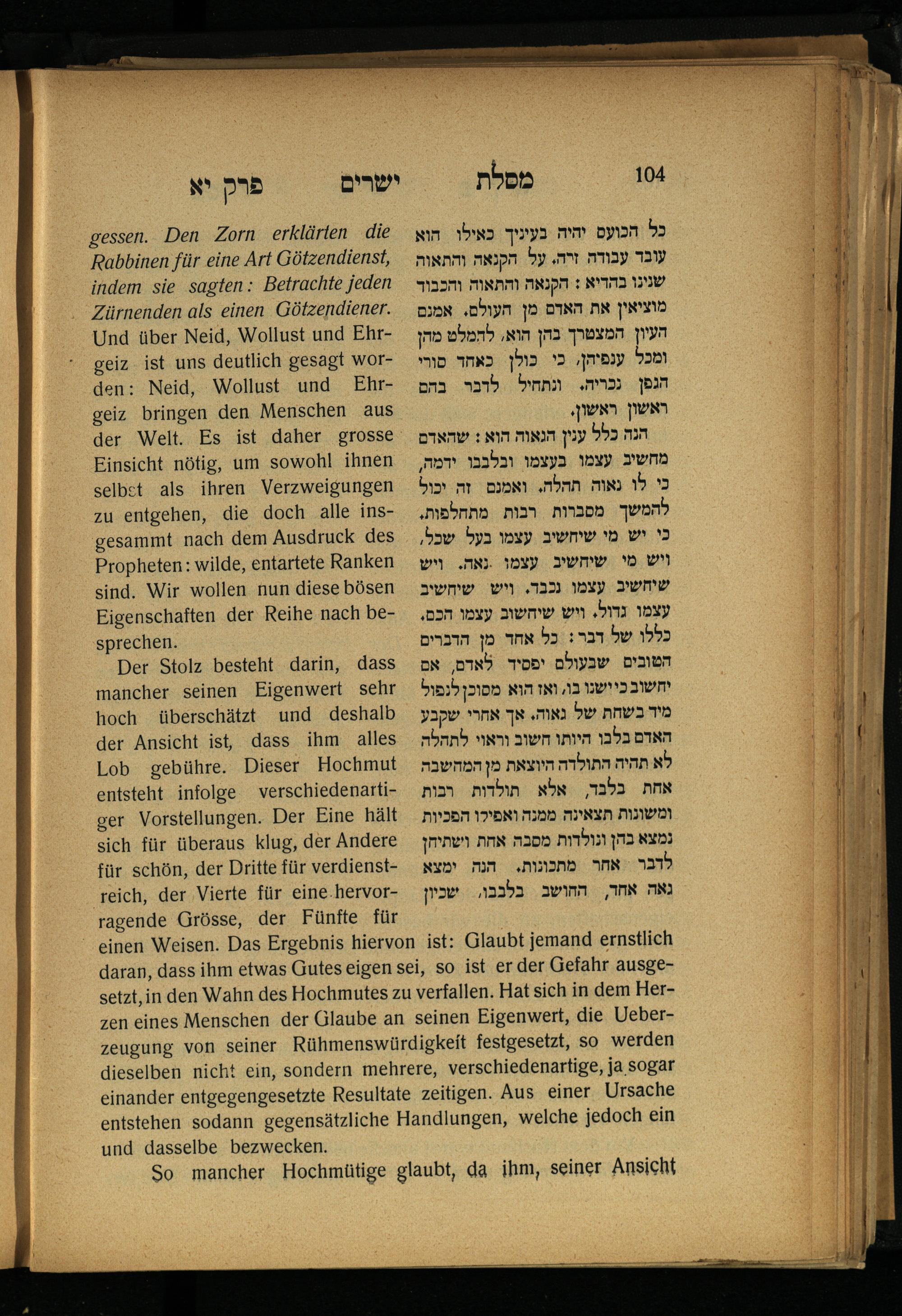 Lebensführung der Redlichen / von Mosche Chaim Luzzatto. Mit einer neben dem Text befindlichen dt. Übers. von Oskar Sachariasohn