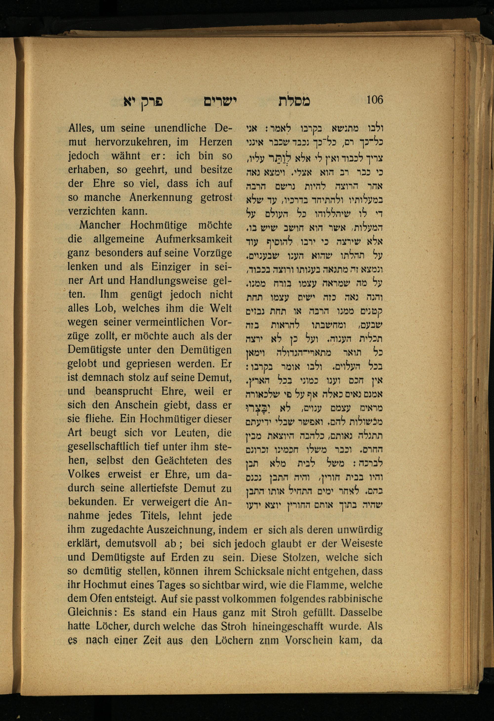 Lebensführung der Redlichen / von Mosche Chaim Luzzatto. Mit einer neben dem Text befindlichen dt. Übers. von Oskar Sachariasohn