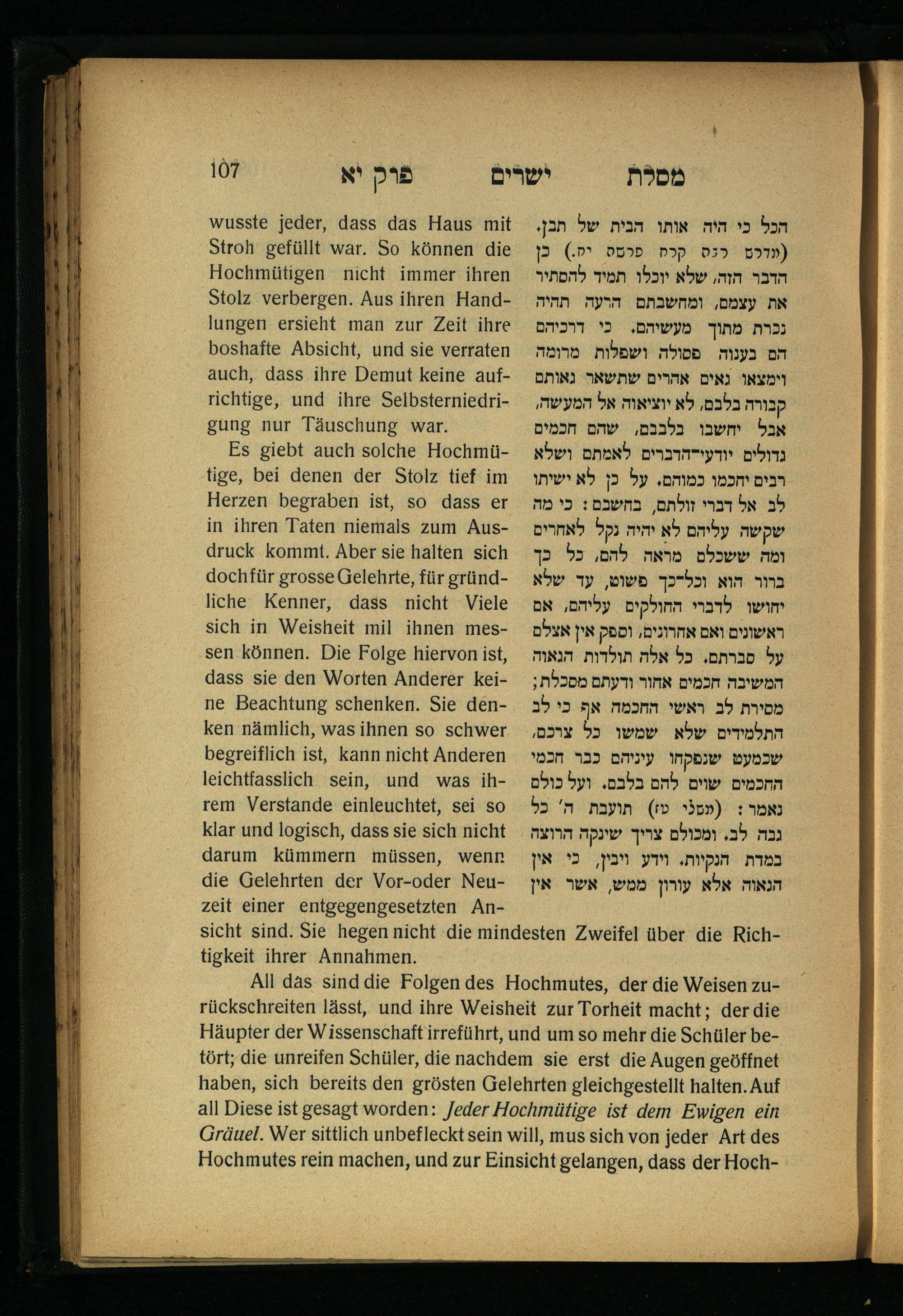 Lebensführung der Redlichen / von Mosche Chaim Luzzatto. Mit einer neben dem Text befindlichen dt. Übers. von Oskar Sachariasohn