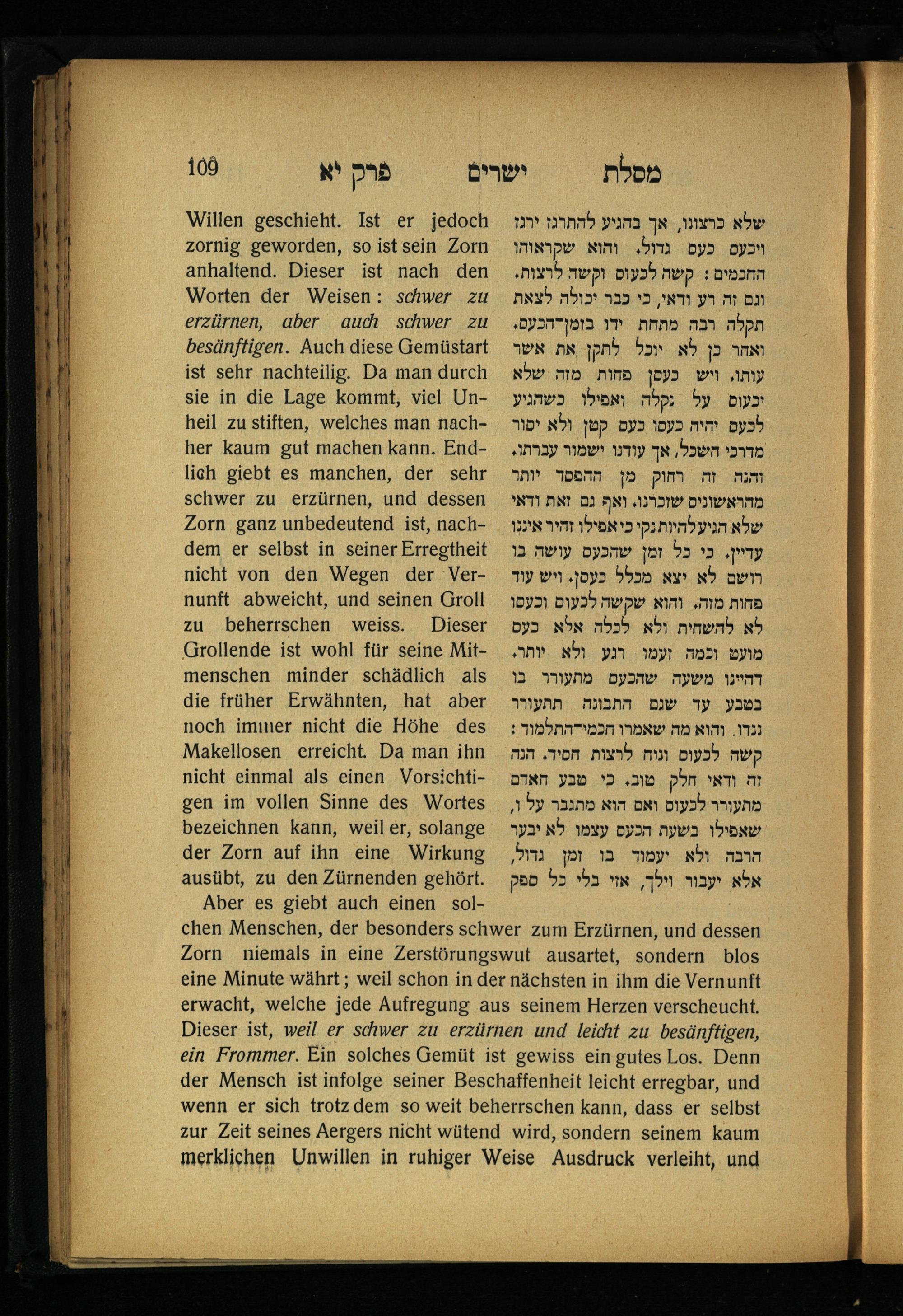 Lebensführung der Redlichen / von Mosche Chaim Luzzatto. Mit einer neben dem Text befindlichen dt. Übers. von Oskar Sachariasohn