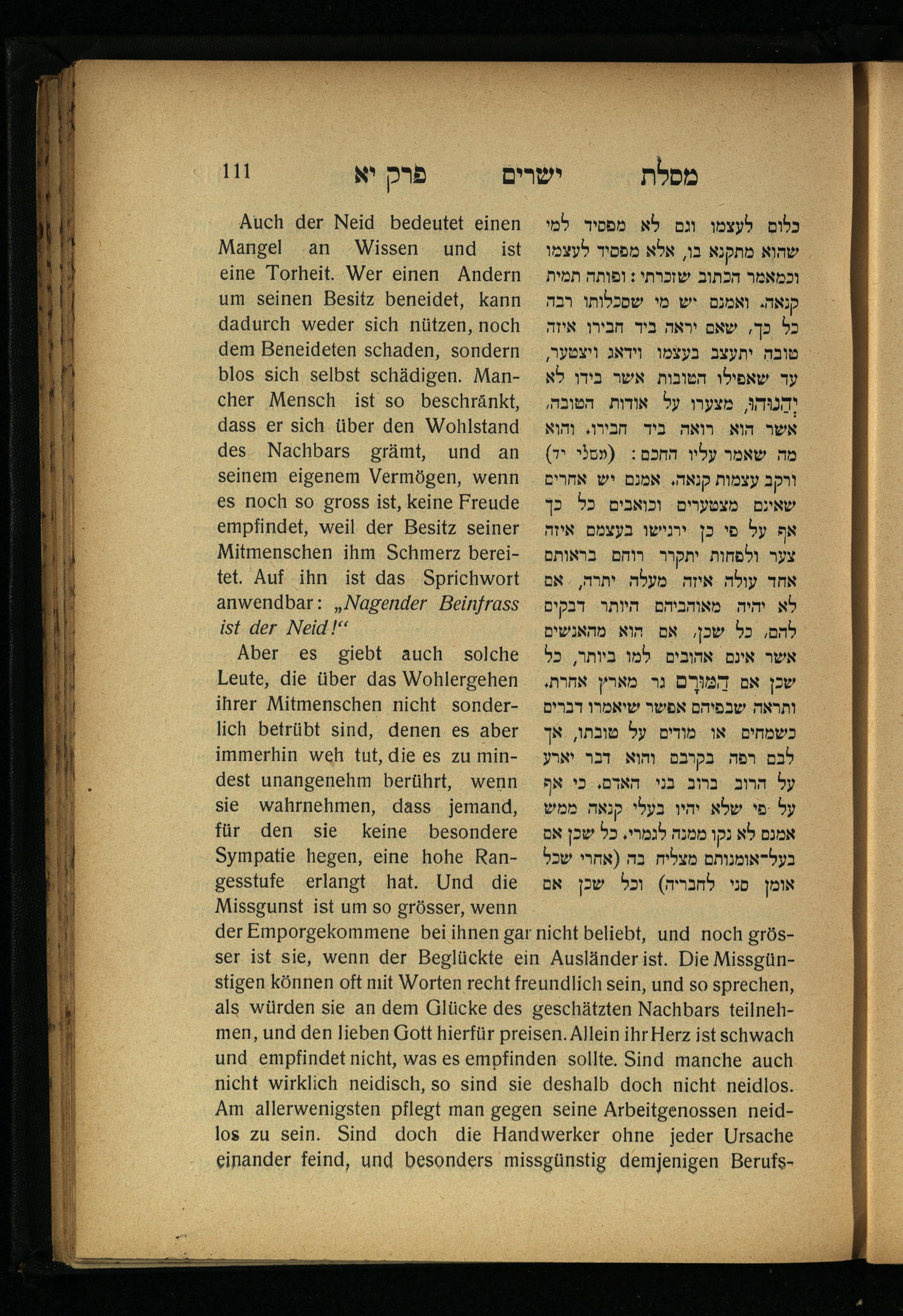 Lebensführung der Redlichen / von Mosche Chaim Luzzatto. Mit einer neben dem Text befindlichen dt. Übers. von Oskar Sachariasohn