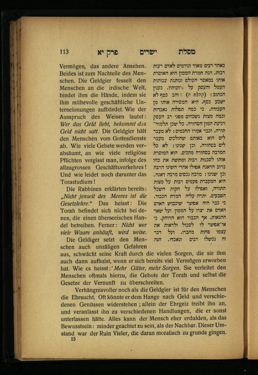 Lebensführung der Redlichen / von Mosche Chaim Luzzatto. Mit einer neben dem Text befindlichen dt. Übers. von Oskar Sachariasohn