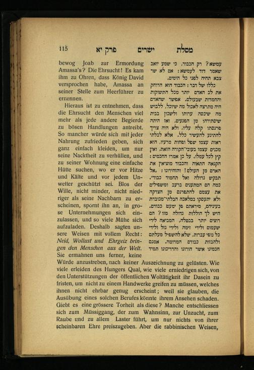 Lebensführung der Redlichen / von Mosche Chaim Luzzatto. Mit einer neben dem Text befindlichen dt. Übers. von Oskar Sachariasohn