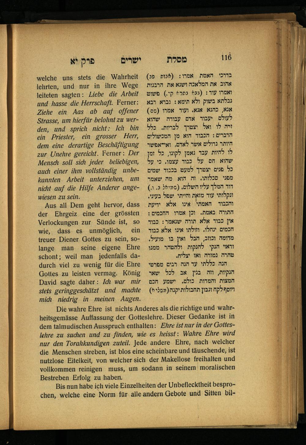 Lebensführung der Redlichen / von Mosche Chaim Luzzatto. Mit einer neben dem Text befindlichen dt. Übers. von Oskar Sachariasohn