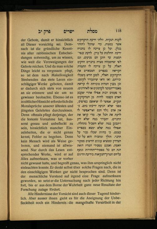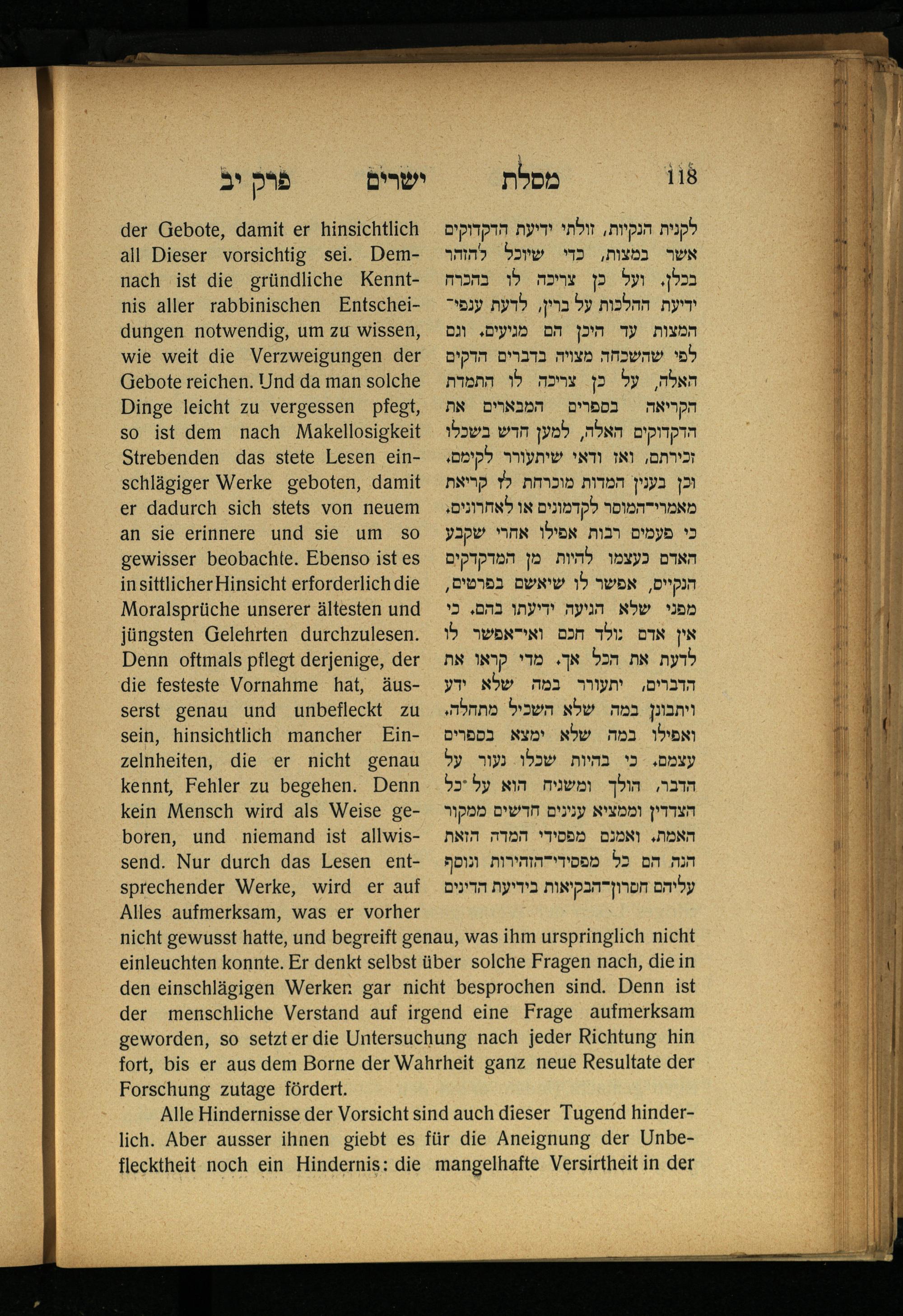 Lebensführung der Redlichen / von Mosche Chaim Luzzatto. Mit einer neben dem Text befindlichen dt. Übers. von Oskar Sachariasohn