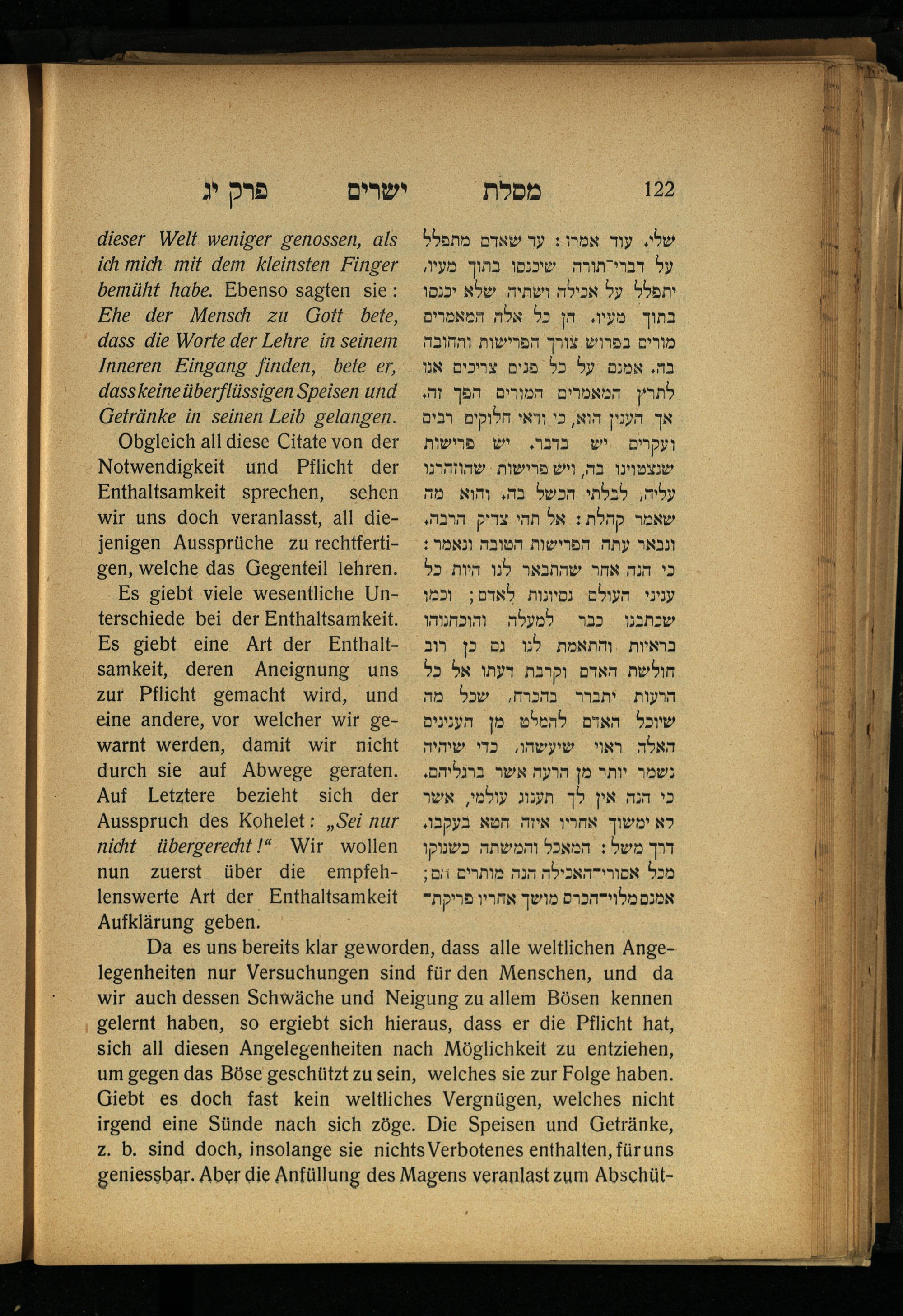 Lebensführung der Redlichen / von Mosche Chaim Luzzatto. Mit einer neben dem Text befindlichen dt. Übers. von Oskar Sachariasohn