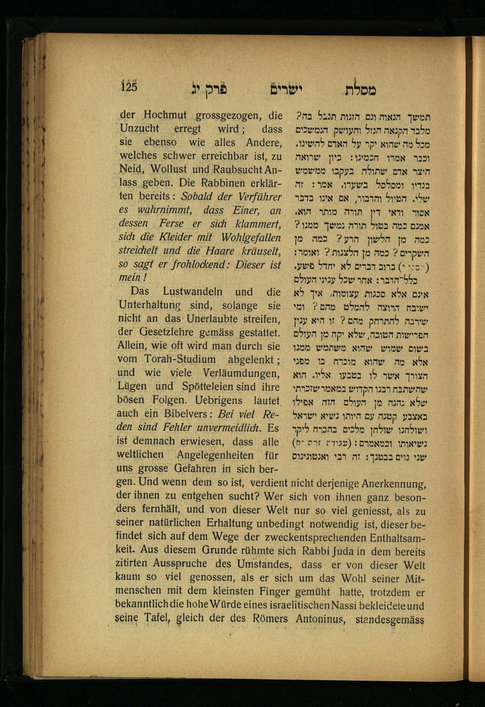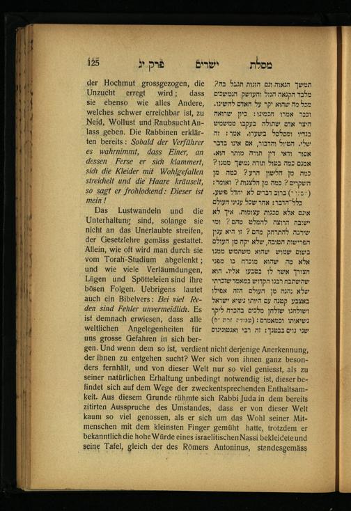 Lebensführung der Redlichen / von Mosche Chaim Luzzatto. Mit einer neben dem Text befindlichen dt. Übers. von Oskar Sachariasohn
