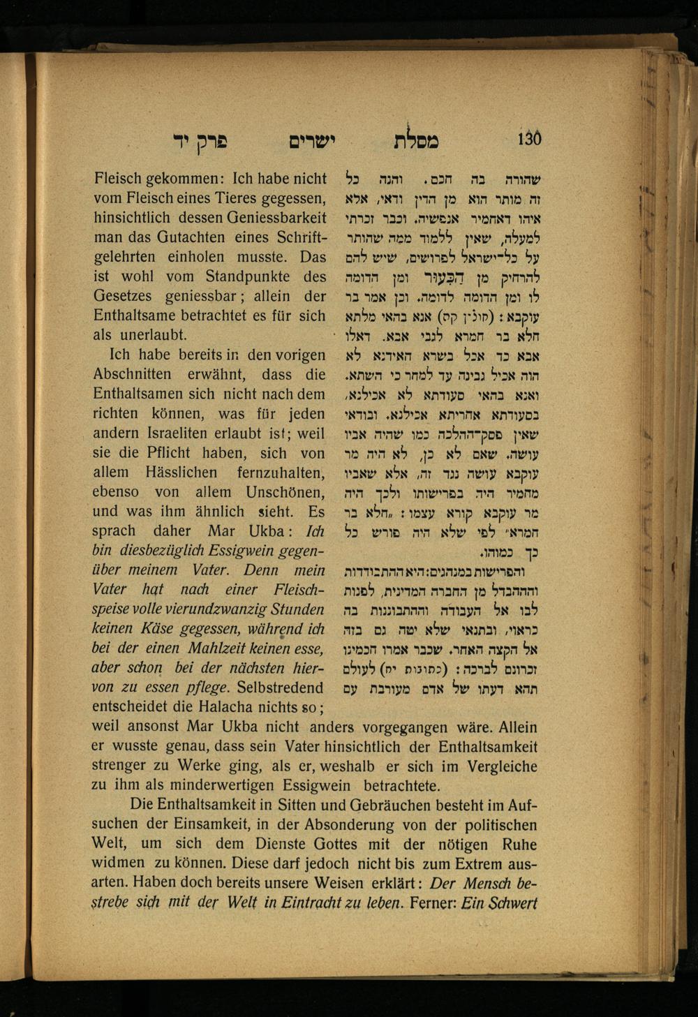 Lebensführung der Redlichen / von Mosche Chaim Luzzatto. Mit einer neben dem Text befindlichen dt. Übers. von Oskar Sachariasohn