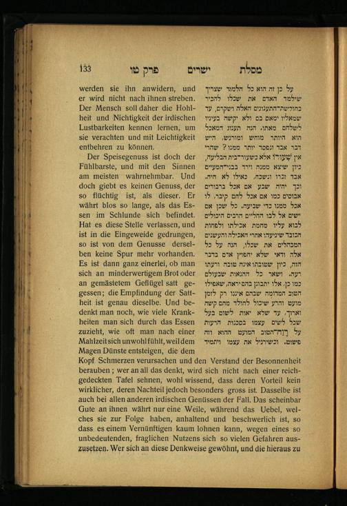 Lebensführung der Redlichen / von Mosche Chaim Luzzatto. Mit einer neben dem Text befindlichen dt. Übers. von Oskar Sachariasohn