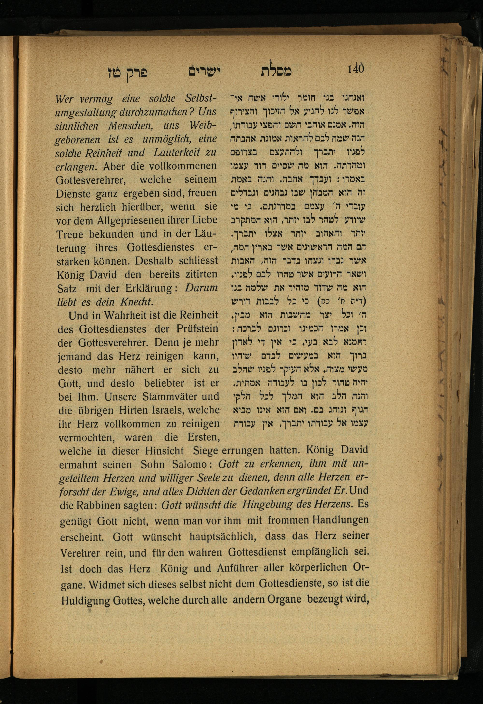Lebensführung der Redlichen / von Mosche Chaim Luzzatto. Mit einer neben dem Text befindlichen dt. Übers. von Oskar Sachariasohn