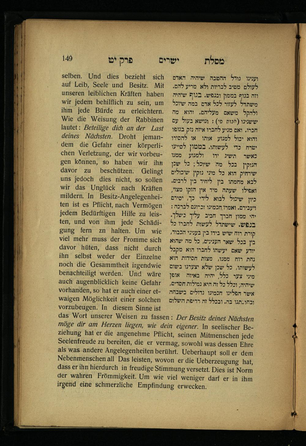 Lebensführung der Redlichen / von Mosche Chaim Luzzatto. Mit einer neben dem Text befindlichen dt. Übers. von Oskar Sachariasohn