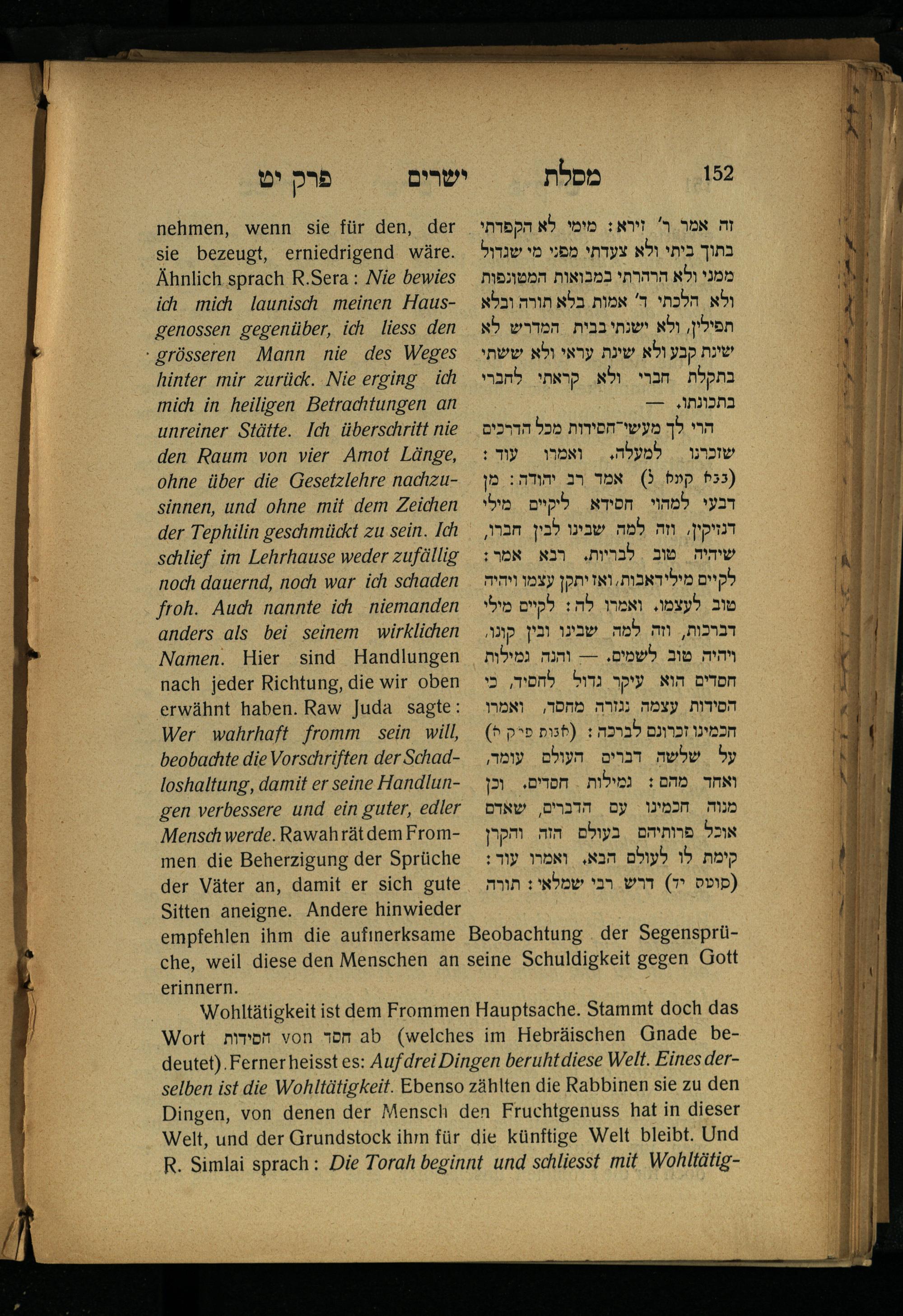 Lebensführung der Redlichen / von Mosche Chaim Luzzatto. Mit einer neben dem Text befindlichen dt. Übers. von Oskar Sachariasohn