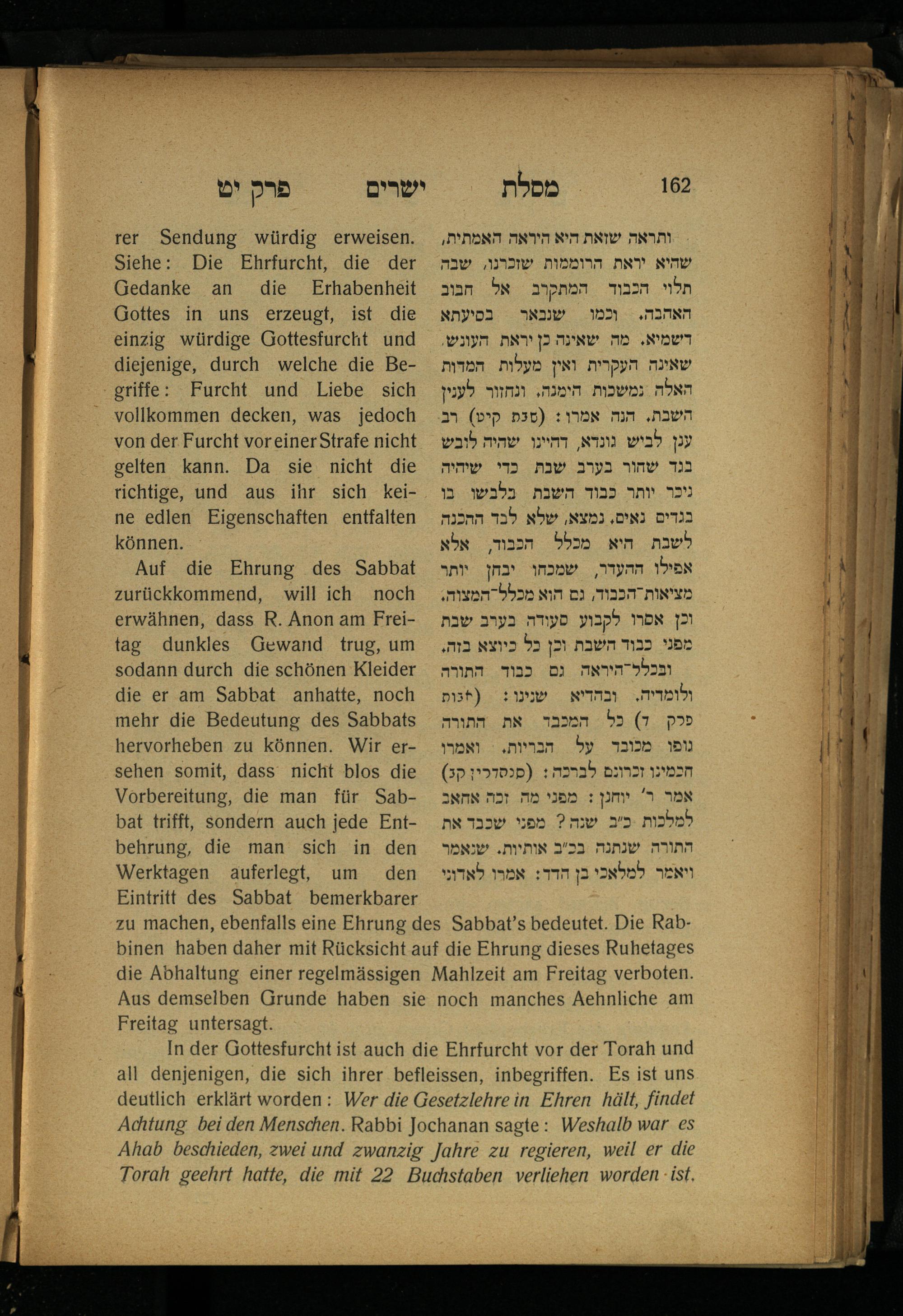 Lebensführung der Redlichen / von Mosche Chaim Luzzatto. Mit einer neben dem Text befindlichen dt. Übers. von Oskar Sachariasohn