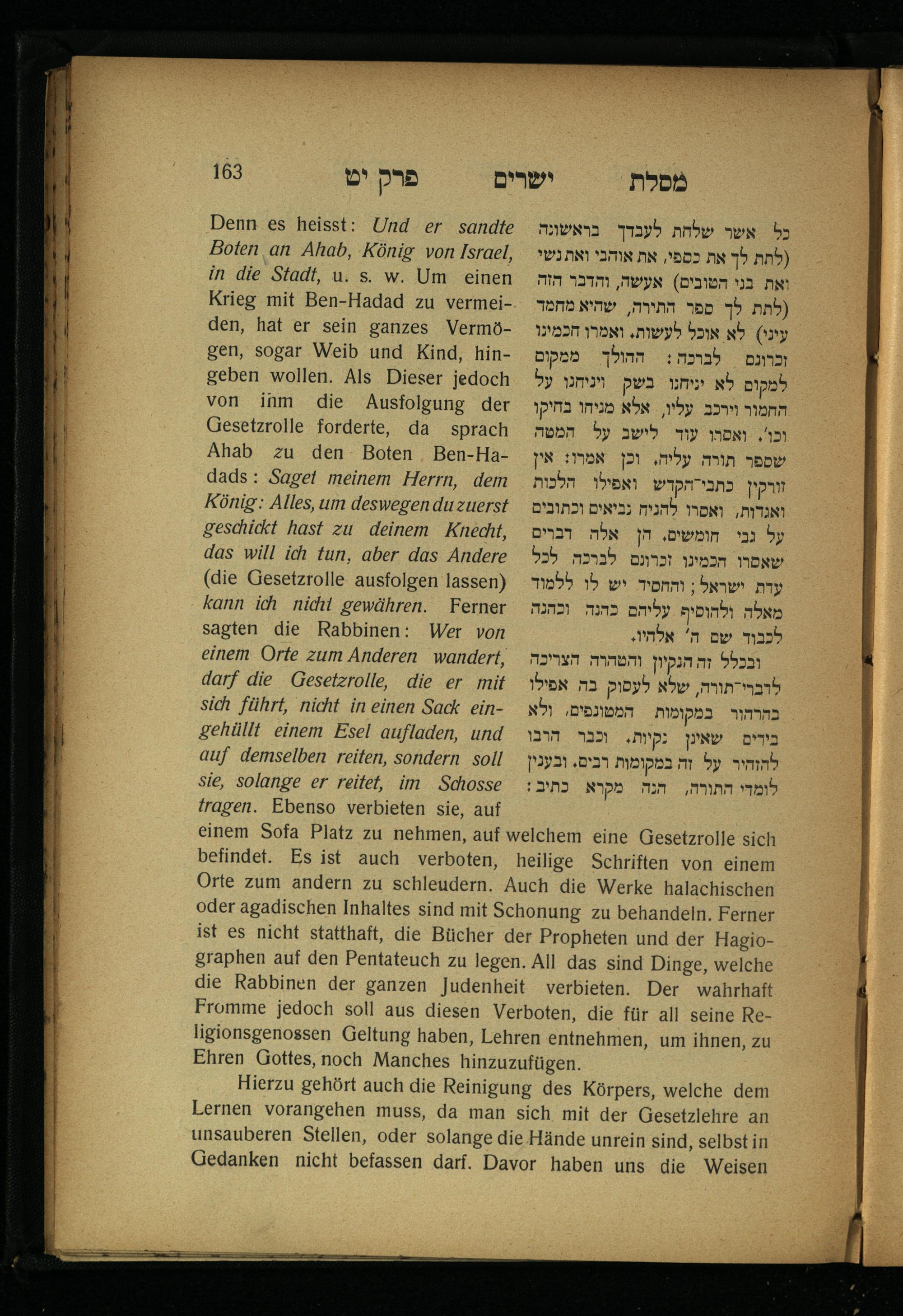 Lebensführung der Redlichen / von Mosche Chaim Luzzatto. Mit einer neben dem Text befindlichen dt. Übers. von Oskar Sachariasohn