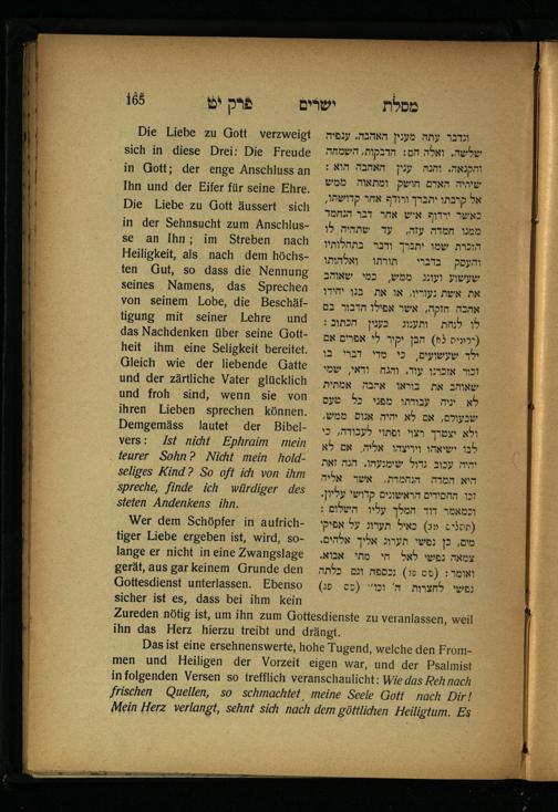 Lebensführung der Redlichen / von Mosche Chaim Luzzatto. Mit einer neben dem Text befindlichen dt. Übers. von Oskar Sachariasohn