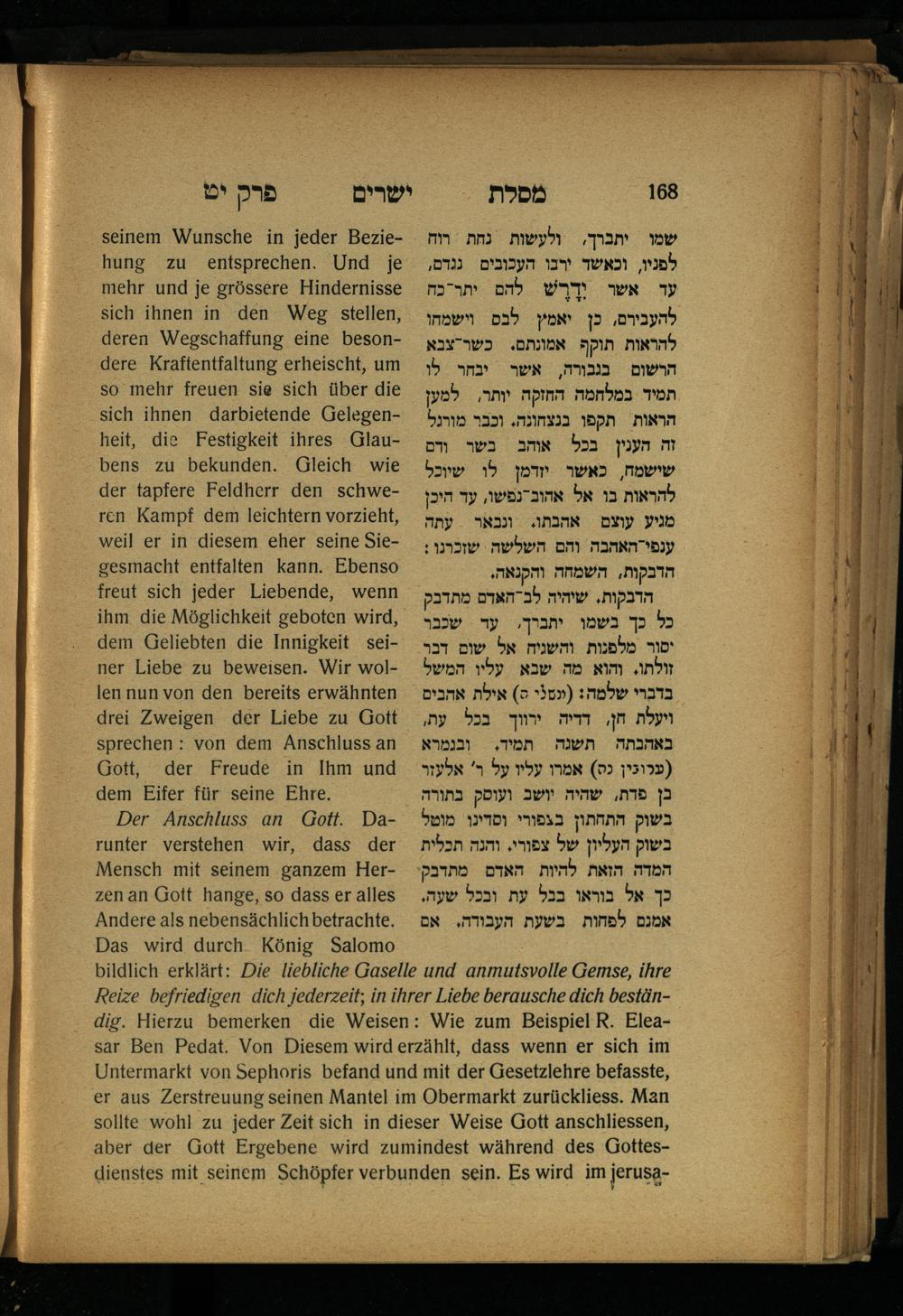 Lebensführung der Redlichen / von Mosche Chaim Luzzatto. Mit einer neben dem Text befindlichen dt. Übers. von Oskar Sachariasohn
