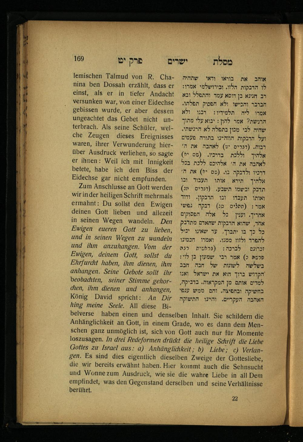Lebensführung der Redlichen / von Mosche Chaim Luzzatto. Mit einer neben dem Text befindlichen dt. Übers. von Oskar Sachariasohn