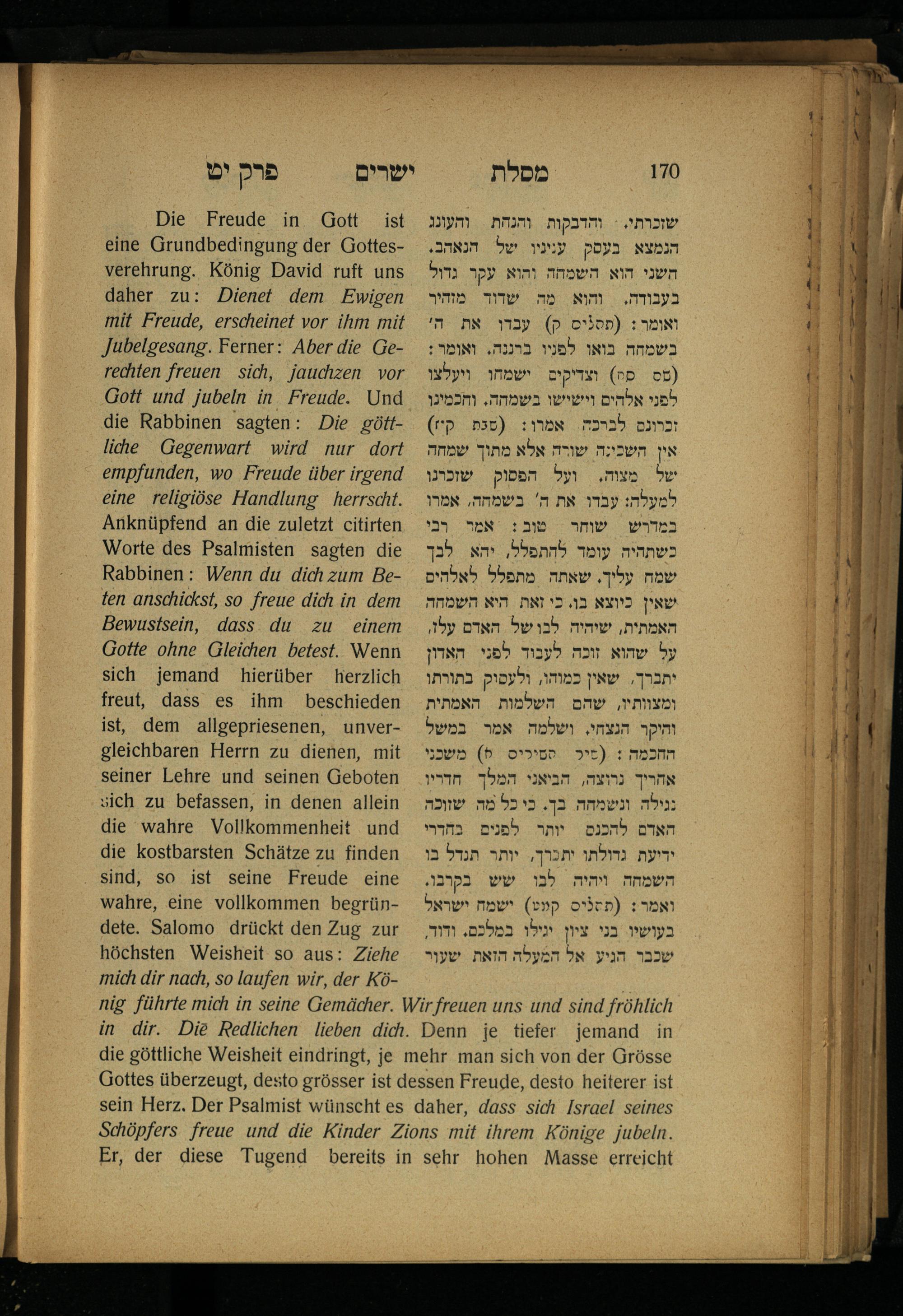 Lebensführung der Redlichen / von Mosche Chaim Luzzatto. Mit einer neben dem Text befindlichen dt. Übers. von Oskar Sachariasohn