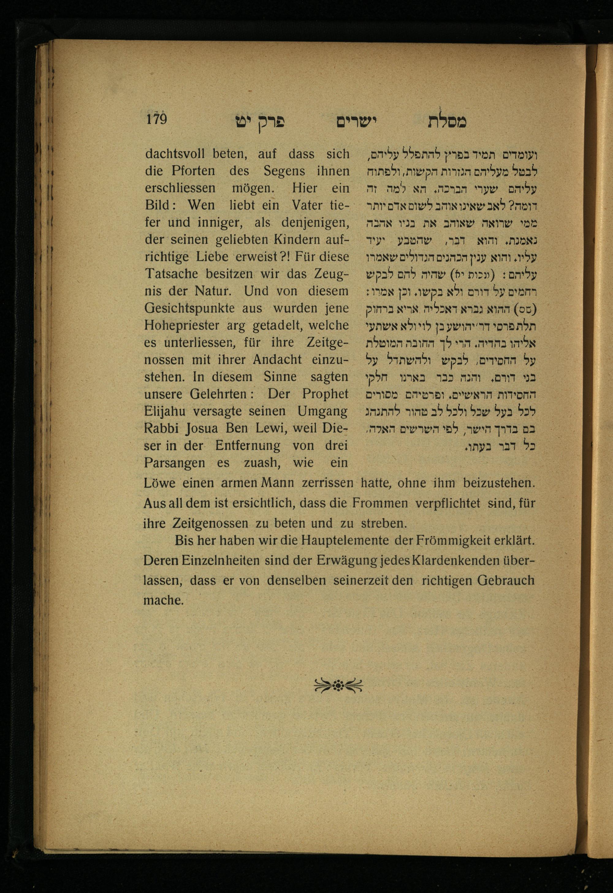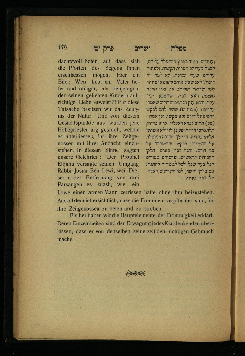 Lebensführung der Redlichen / von Mosche Chaim Luzzatto. Mit einer neben dem Text befindlichen dt. Übers. von Oskar Sachariasohn