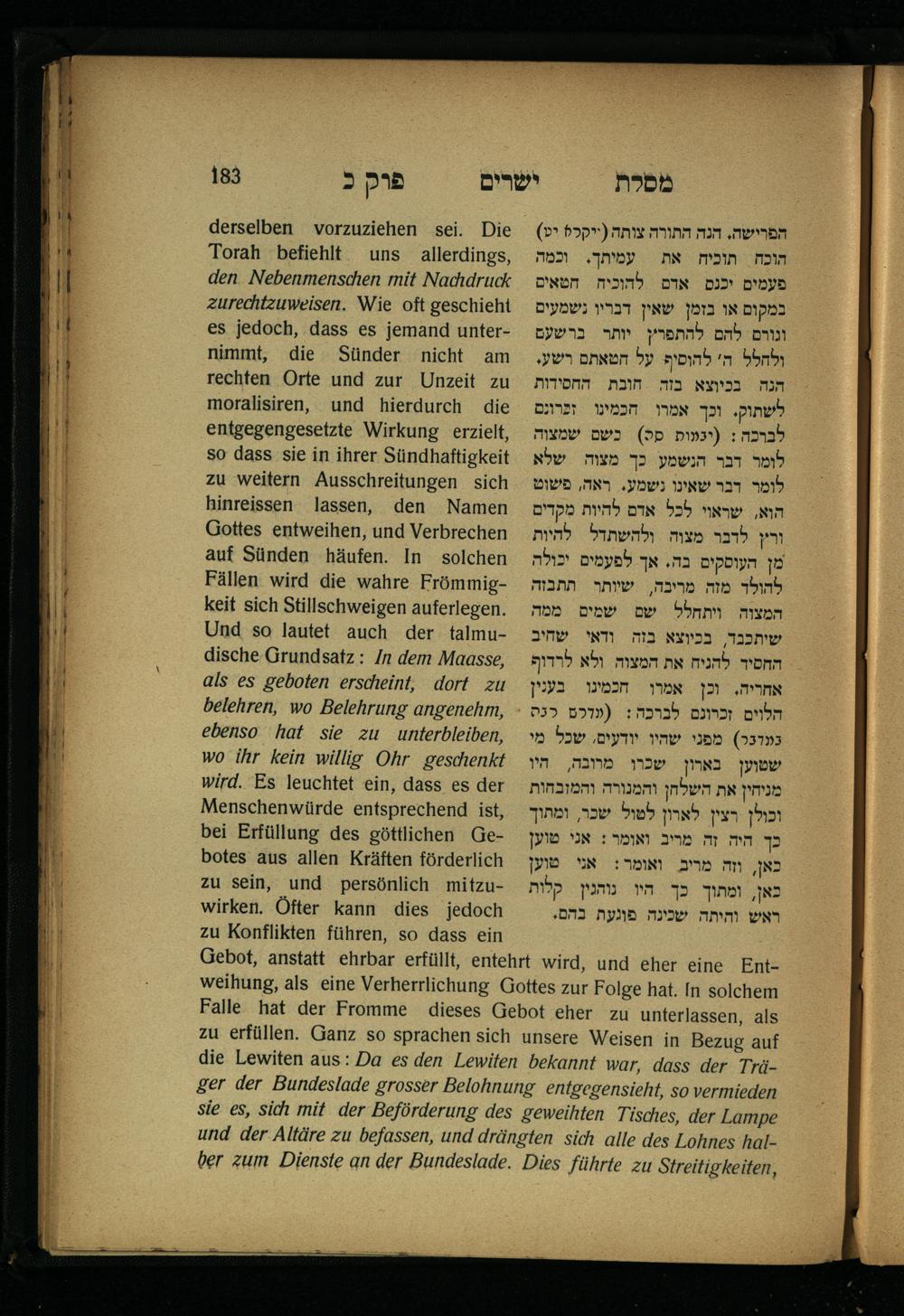 Lebensführung der Redlichen / von Mosche Chaim Luzzatto. Mit einer neben dem Text befindlichen dt. Übers. von Oskar Sachariasohn