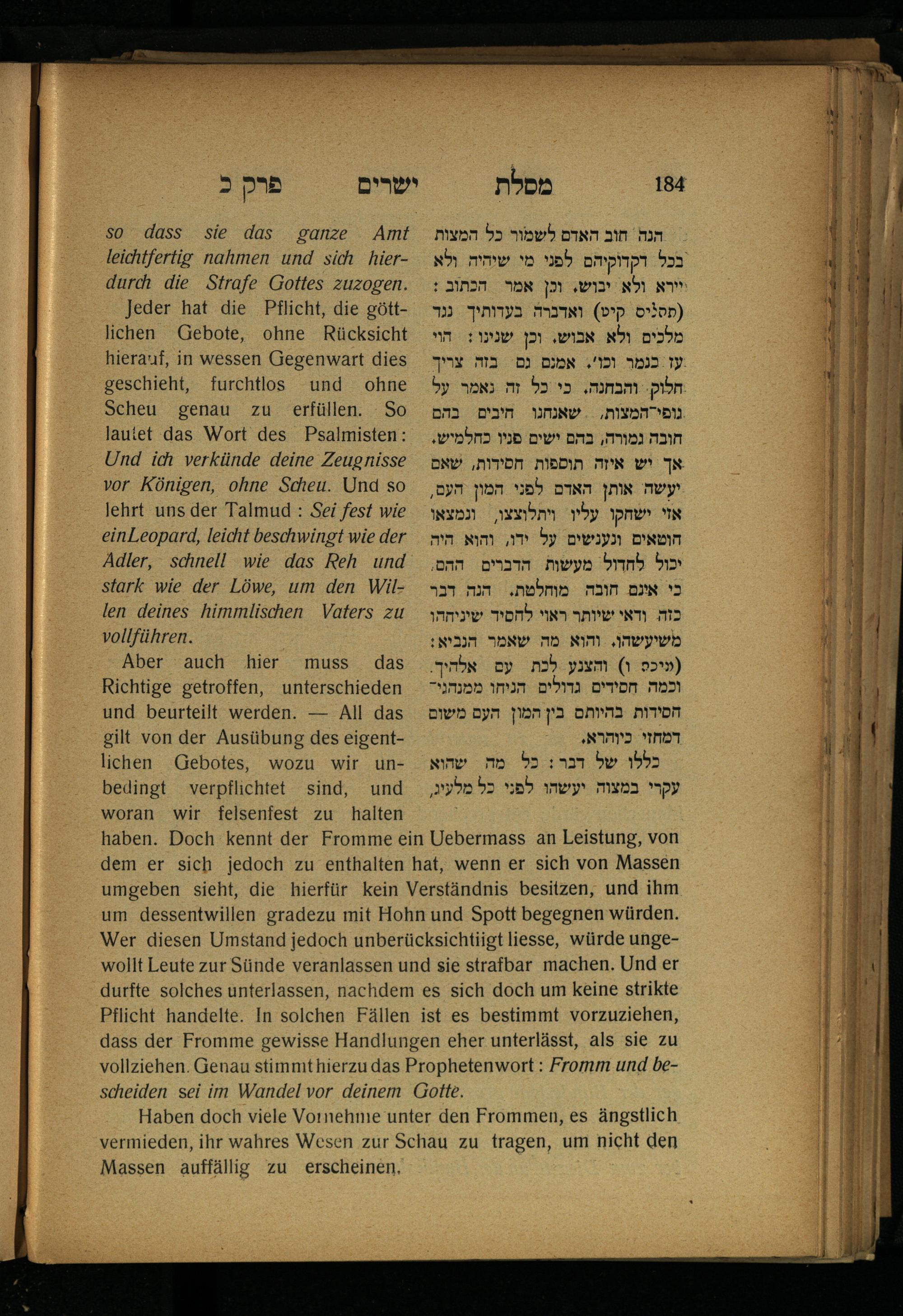 Lebensführung der Redlichen / von Mosche Chaim Luzzatto. Mit einer neben dem Text befindlichen dt. Übers. von Oskar Sachariasohn